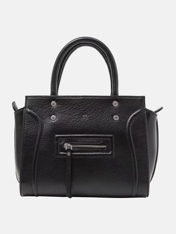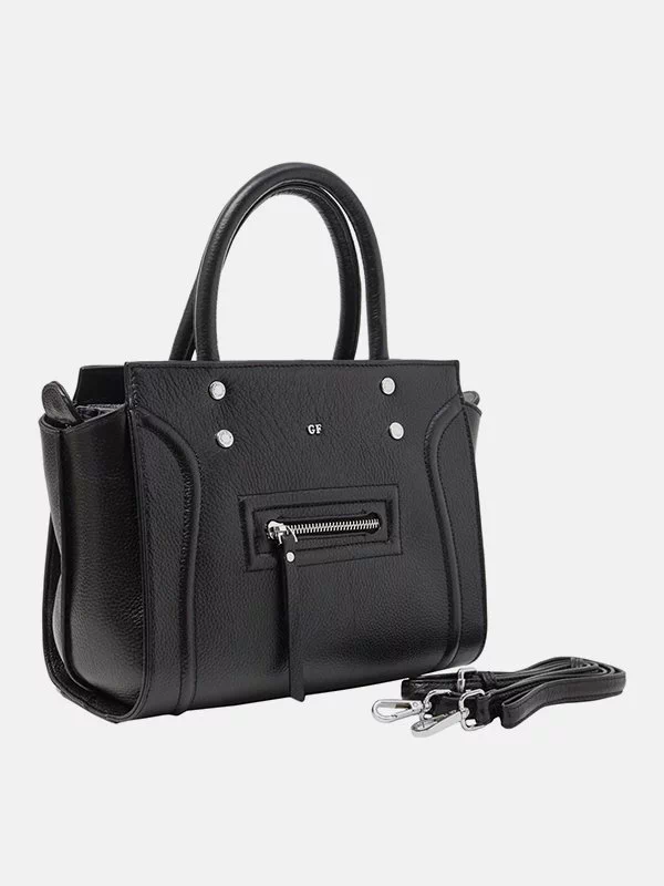 Женская сумка GF-111 – оптимальный выбор для небольших вещей, различных мелочей (косметики, денег, ключей, павербанков, наушников, смартфонов, зарядных устройств и т.п.). Пошита из черной зернистой натуральной кожи флотар. Сумка неприхотлива в уходе, имеет эффектный внешний вид, качественный пошив. Добавит элегантности практически любому образу. Страна производитель бренда – Италия.
