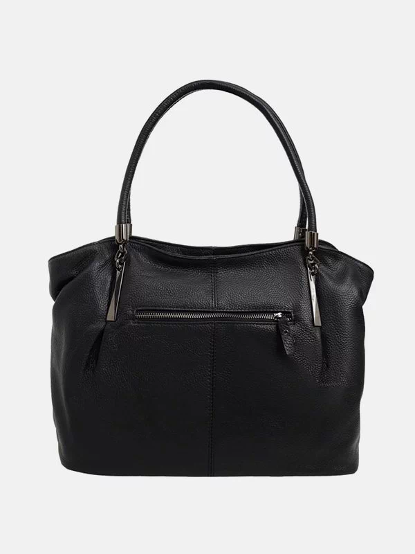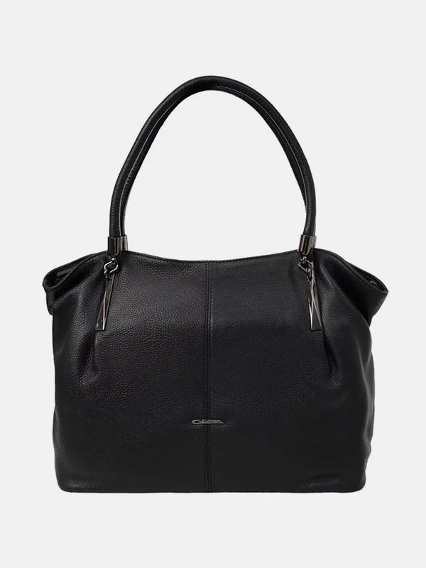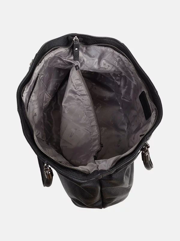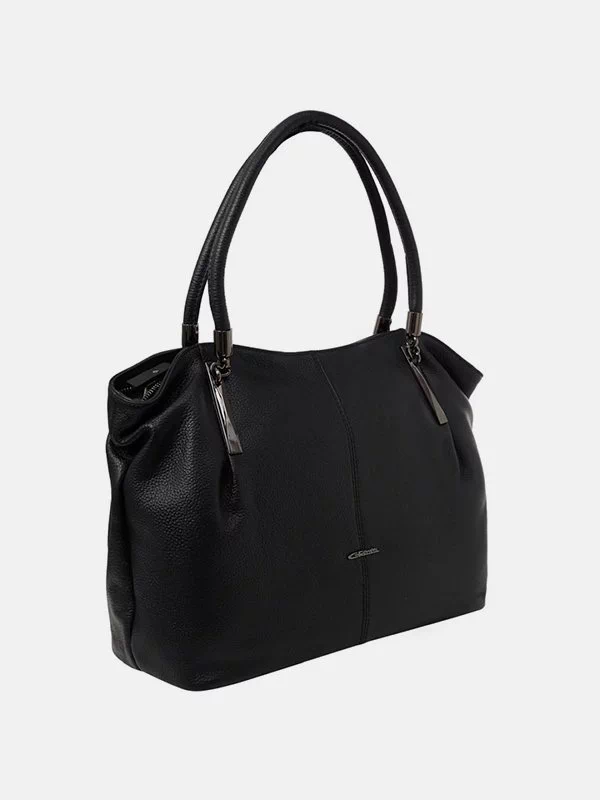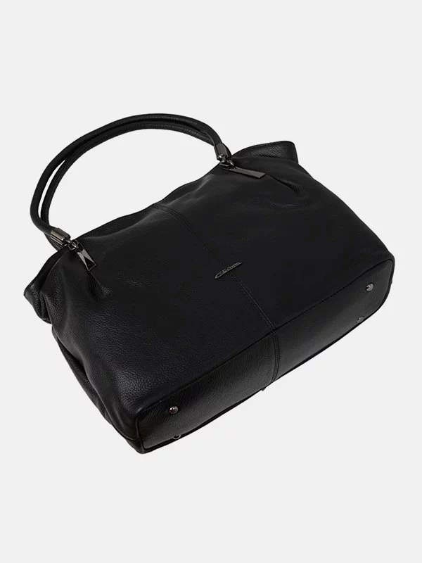 Черная мягкая сумка из фактурной натуральной кожи