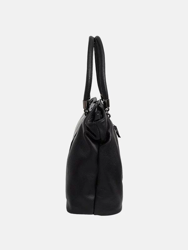 Деловая черная сумка из зернистой натуральной кожи