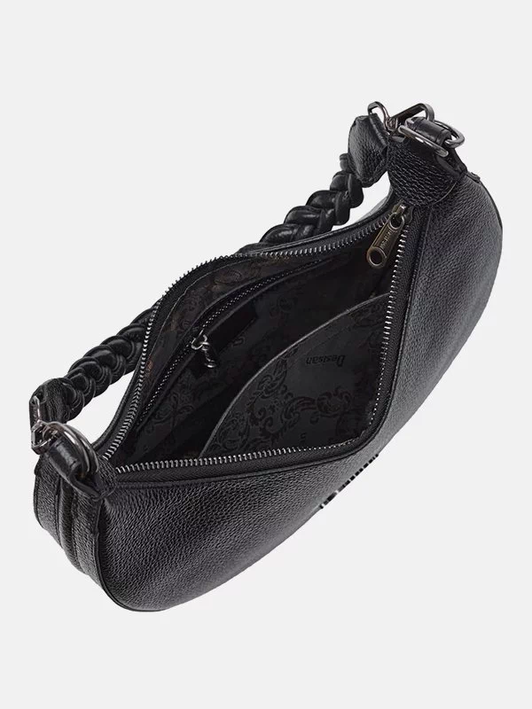 Женская сумка D-0201 – правильный вариант для денег, различных мелочей (косметики, ключей, павербанков, наушников, смартфонов, зарядных устройств и т.п.). Пошита из черной зернистой натуральной кожи флотар. Сумка неприхотлива в уходе, имеет эффектный внешний вид, качественный пошив. Добавит элегантности практически любому образу. Страна производитель бренда – Турция.