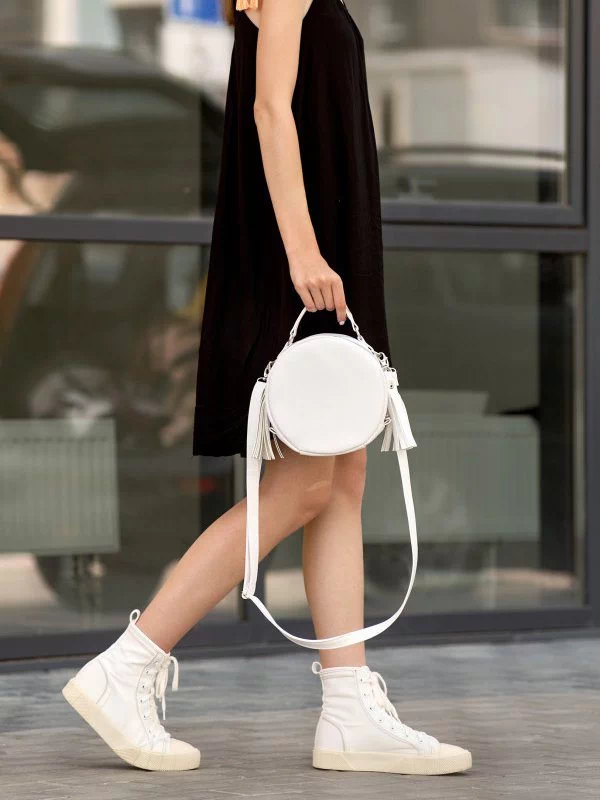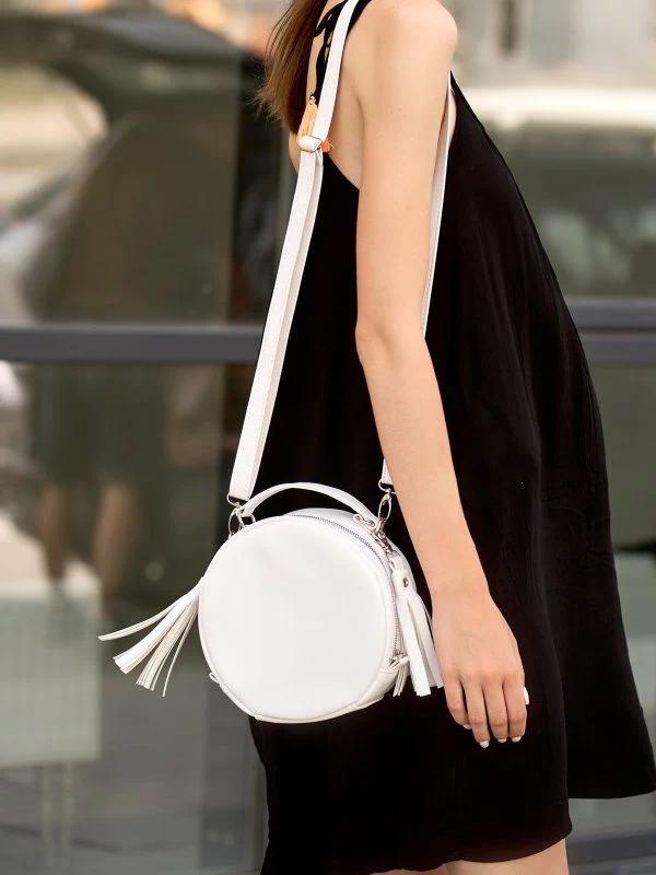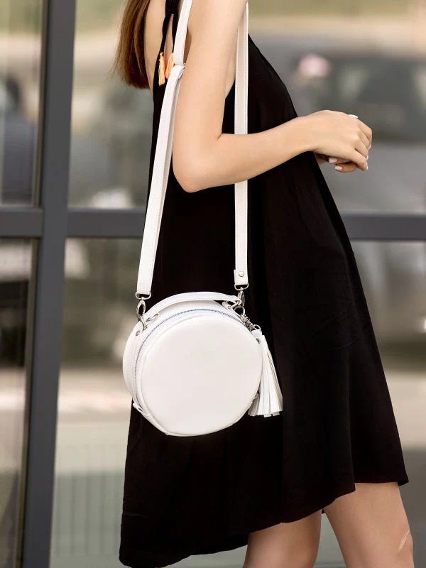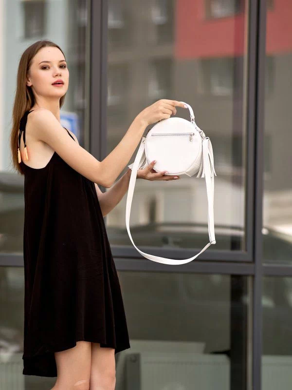Круглая кроссбоди из эко-кожи в белом исполнении