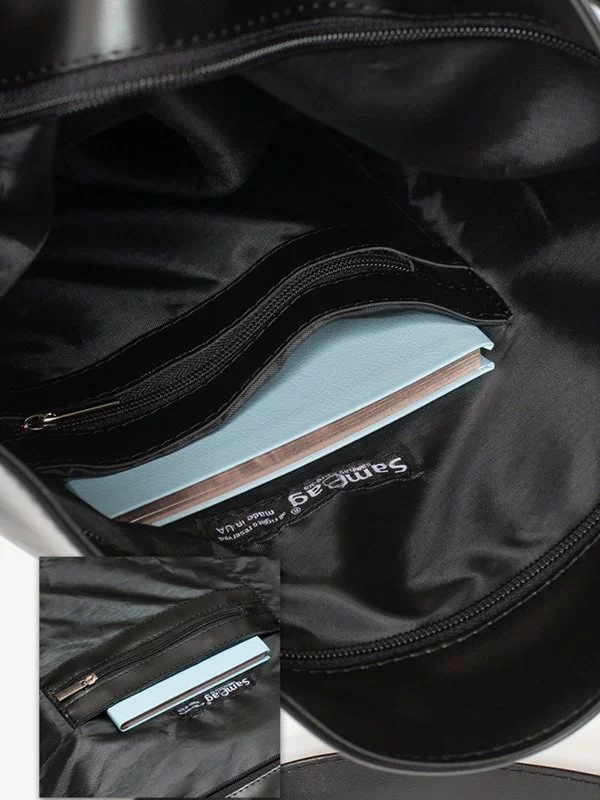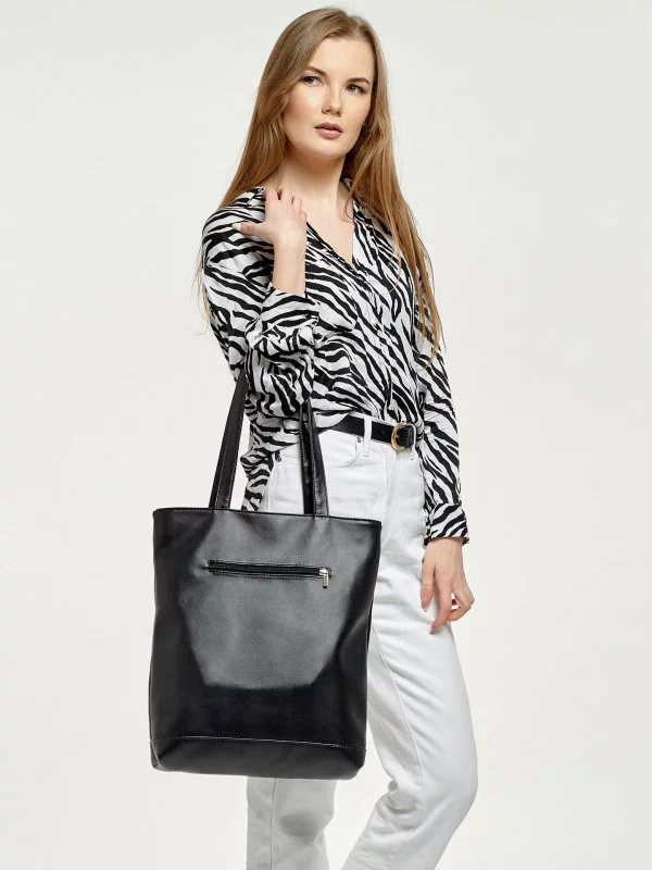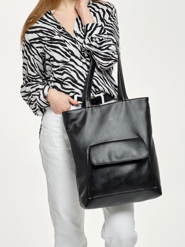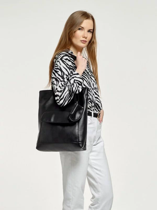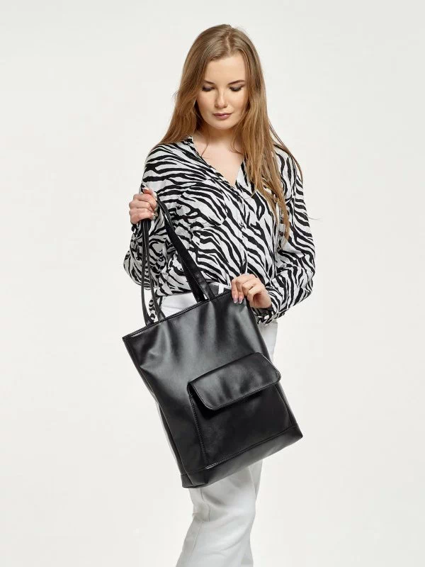 Чёрно-белая сумка-шоппер из эко-кожи с карманом на магните