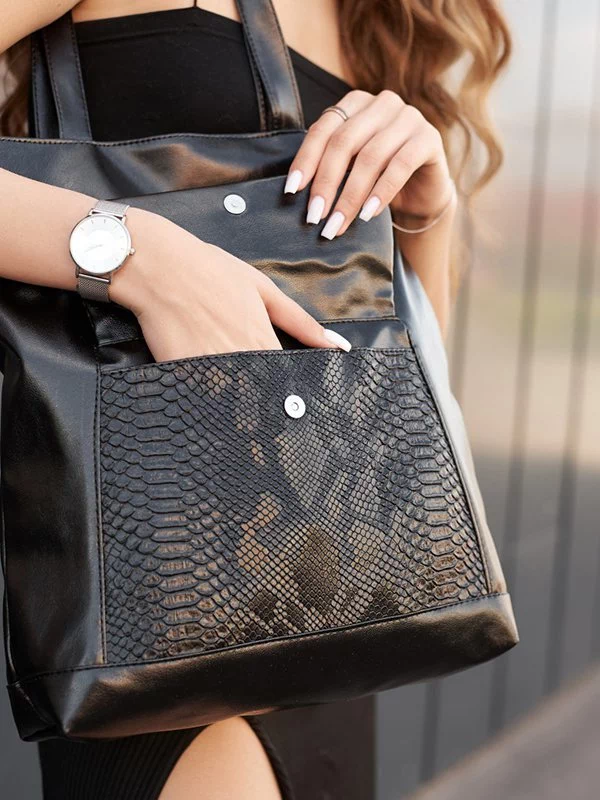Мощная женская сумка-шоппер чёрного цвета на любые случаи жизни.