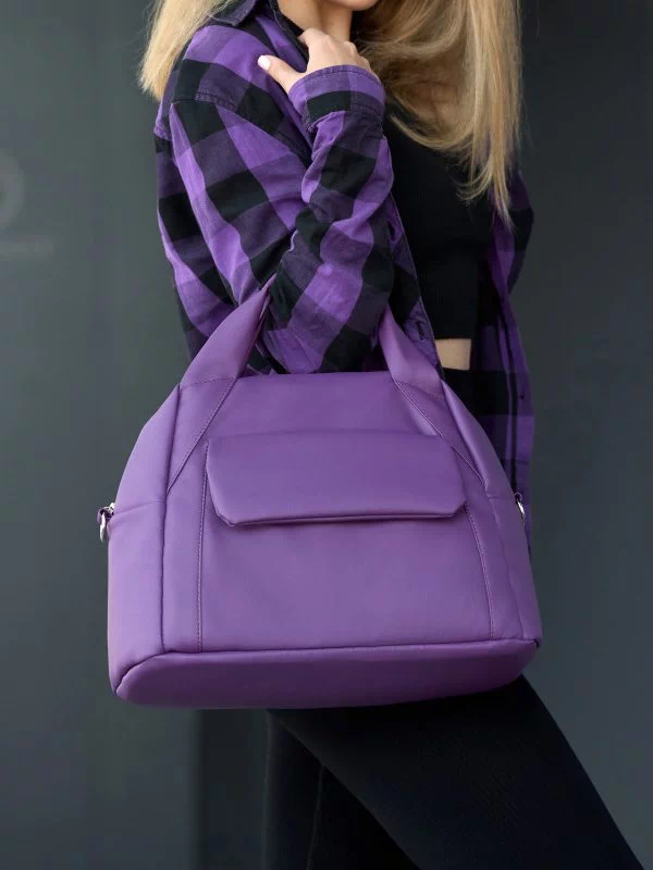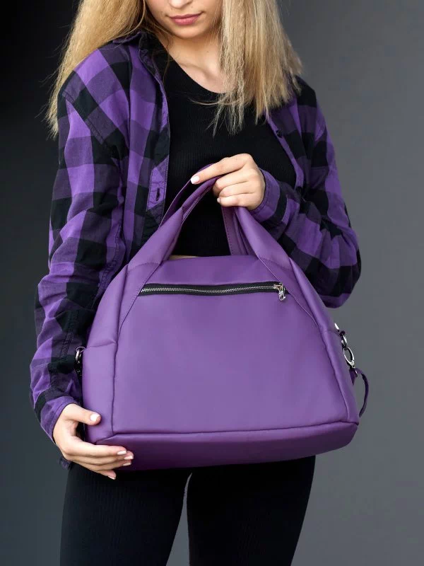 Фиолетовая спортивная сумка с карманом из эко-кожи