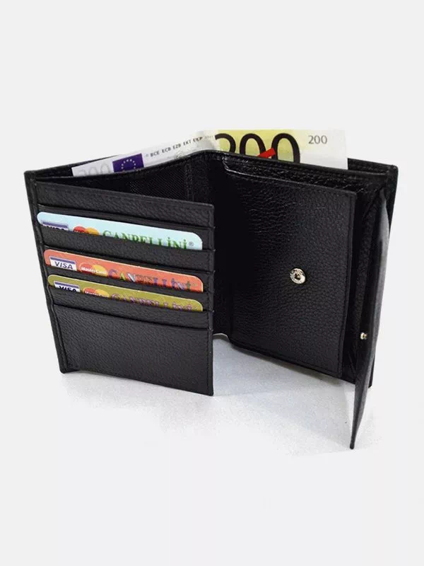 Будьте первым, кто оставил отзыв на “Компактное вертикальное портмоне из черной натуральной кожи”