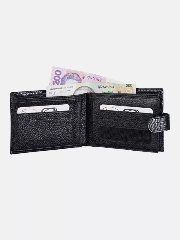 Мужское портмоне D-4114 — идеальный вариант в сочетании с любым стилем. Изготовлено из фактурной натуральной кожи «под рептилию» черного цвета. Аксессуар неприхотлив в уходе, имеет яркий внешний вид, качественный пошив, пользуется значительным спросом на украинском рынке. Данный мужской кошелек выгодно подчеркнет ваш стиль. Шикарное решение в качестве подарка для любого мужчины. Страна производитель – Турция.