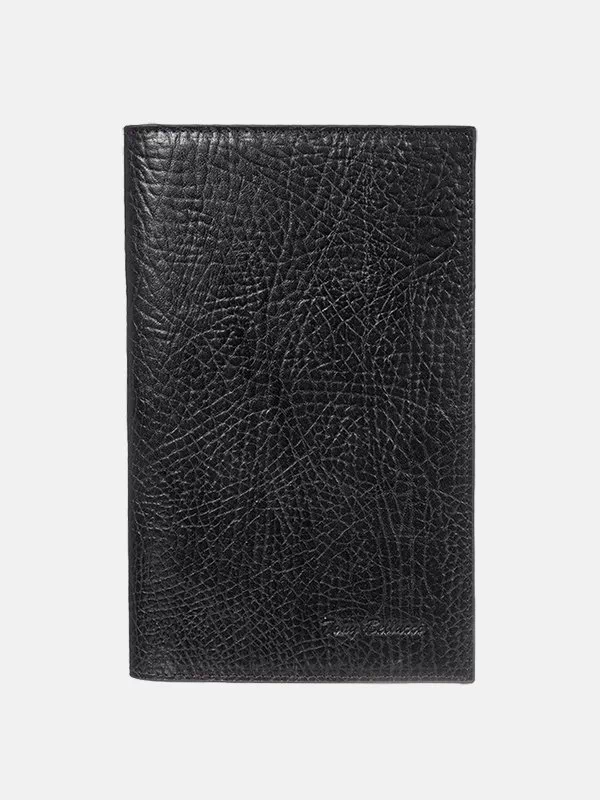 Вертикальный кошелек из фактурной черной натуральной кожи