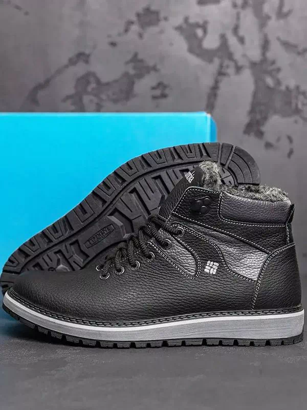 Восхитительные зимние мужские полуботинки серо-черного цвета на любые случаи жизни.