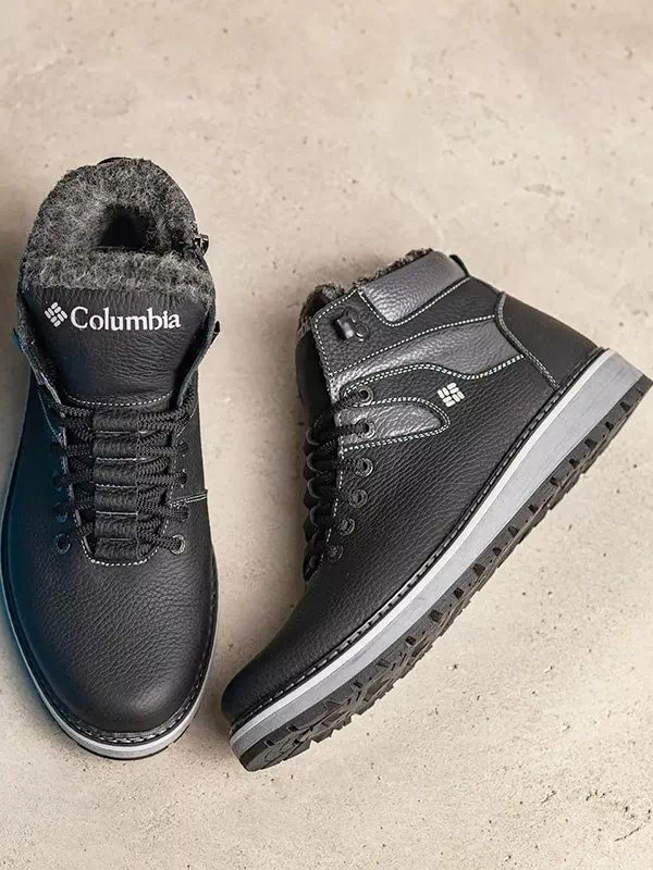 Серо-черные зимние ботинки из зернистой натуральной кожи