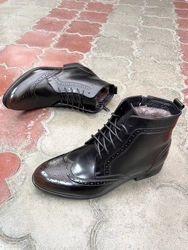 Привлекательные зимние мужские ботинки в черно-коричневом исполнении на все случаи жизни.