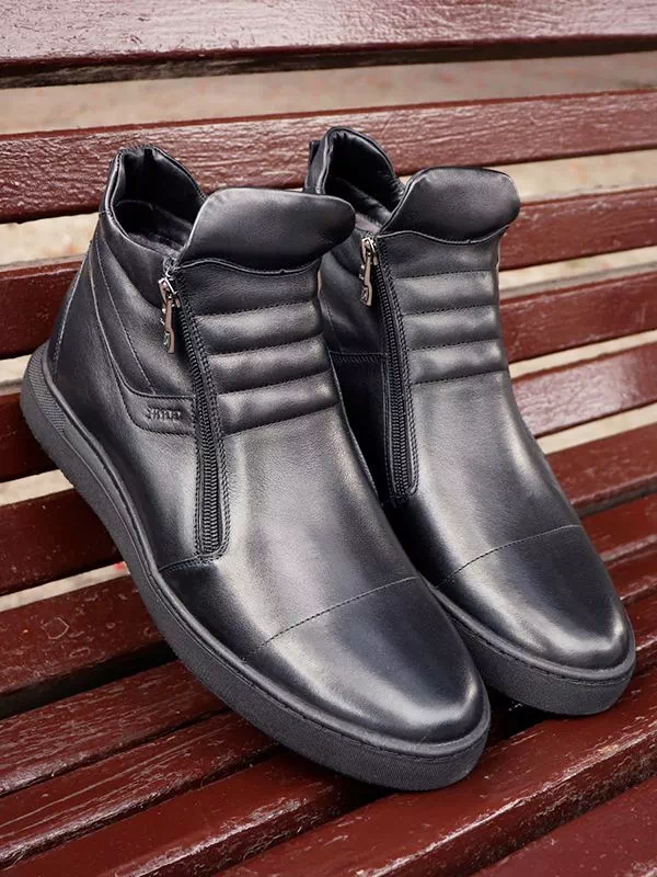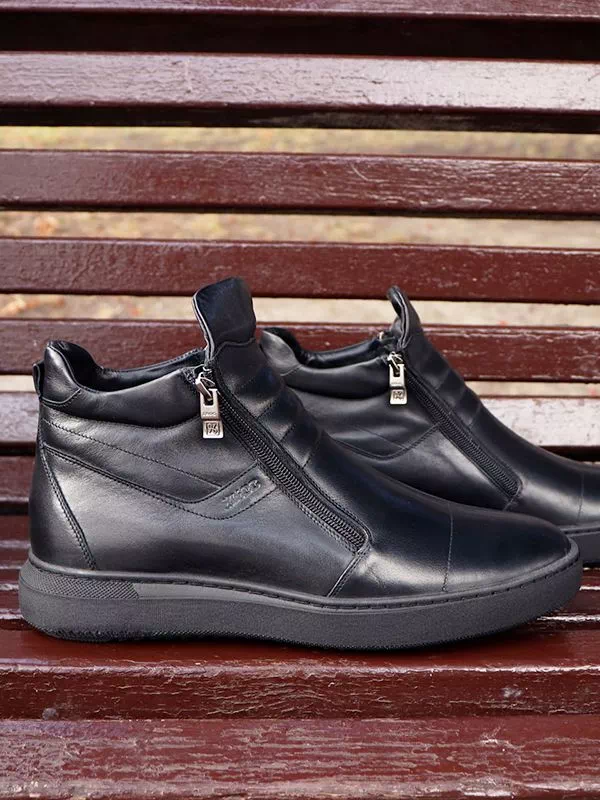 Интересные зимние мужские полуботинки черного цвета на любые случаи жизни.