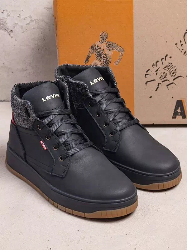 Интересные зимние мужские полуботинки серо-черного цвета на любые случаи жизни.