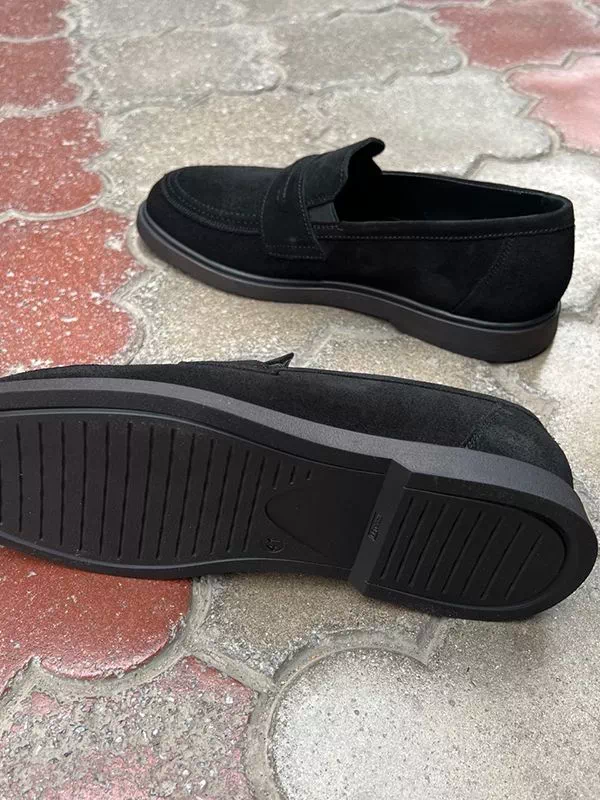 Лоферы из натуральной замши в черном исполнении