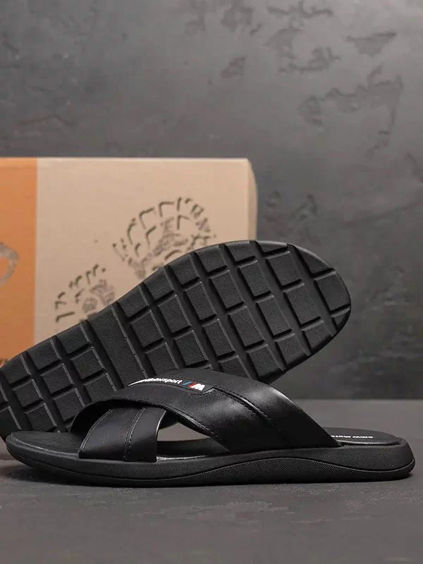 Трендовые мужские шлёпанцы в чёрном исполнении на все случаи жизни.
