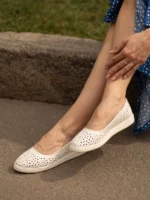 Be the first to review “Белые кожаные летние балетки с перфорацией в горошек”