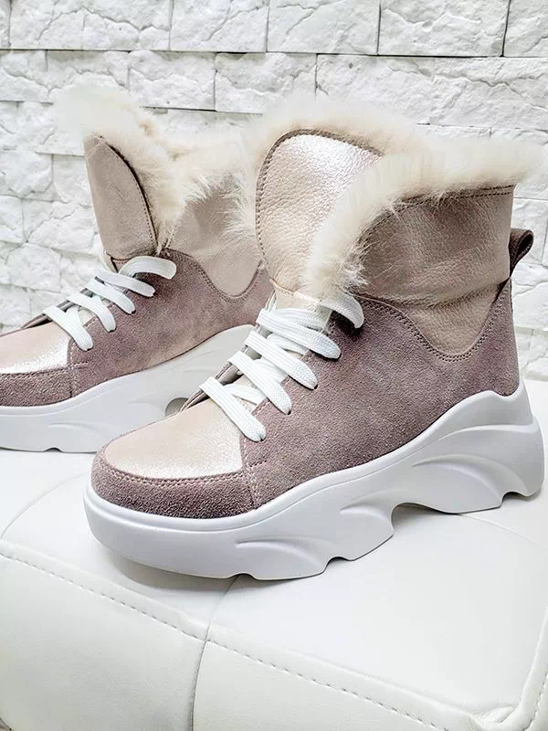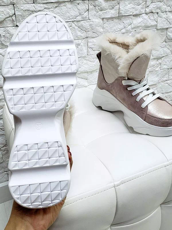 Be the first to review “Зимние ботинки из пудровой натуральной замши и кожи”
