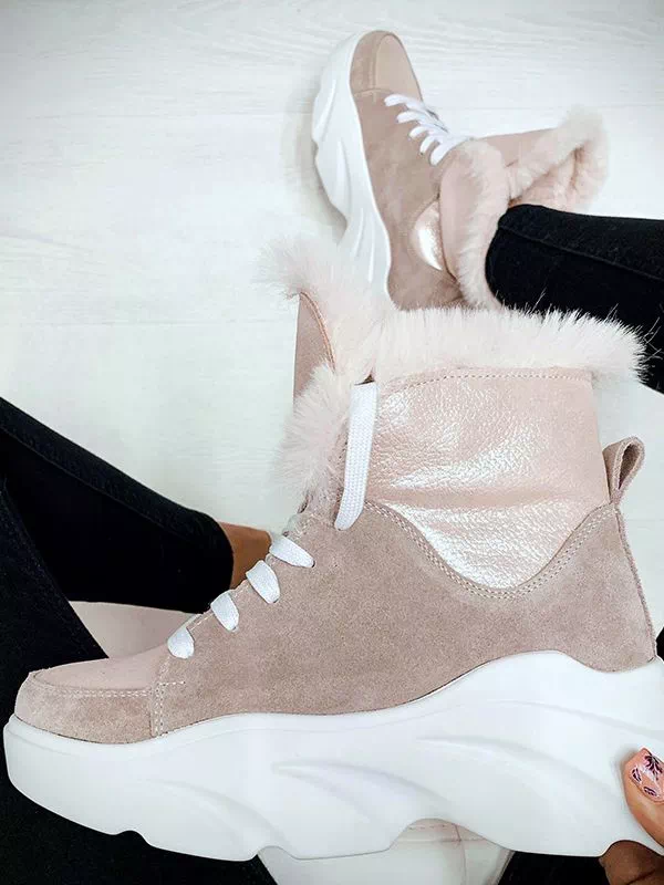 Превосходные зимние женские ботинки пудрового оттенка на любые случаи жизни.