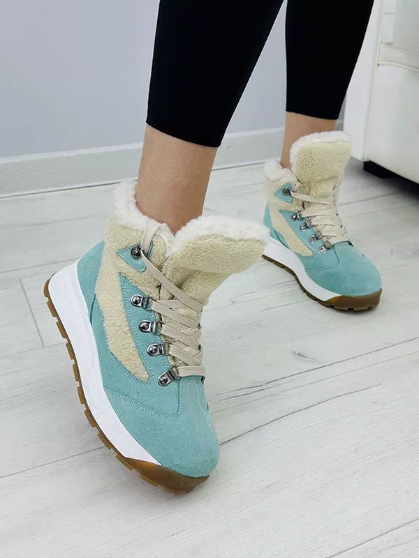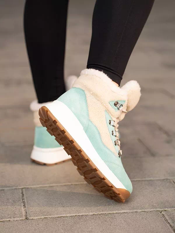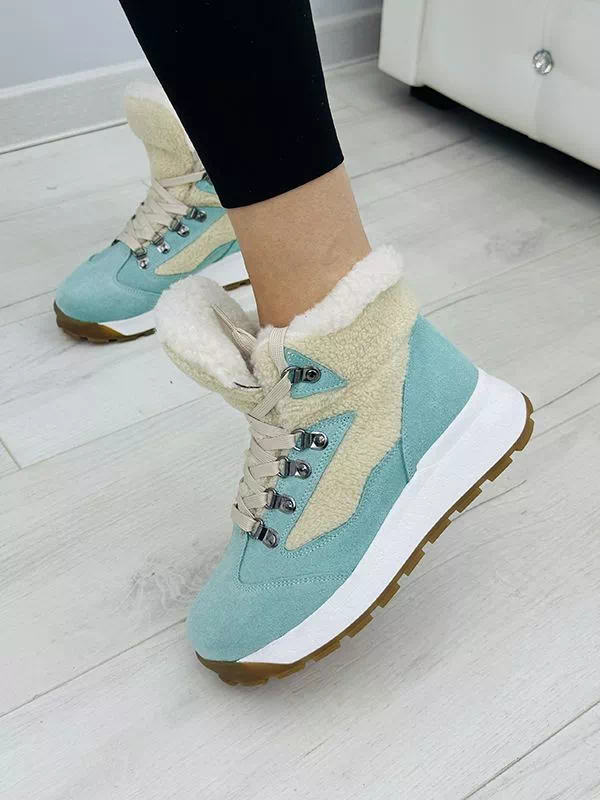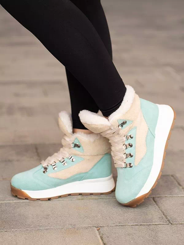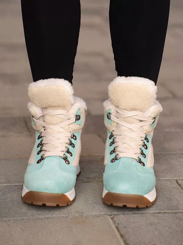 Идеальные зимние женские ботинки в бежево-мятном исполнении на любые случаи жизни.