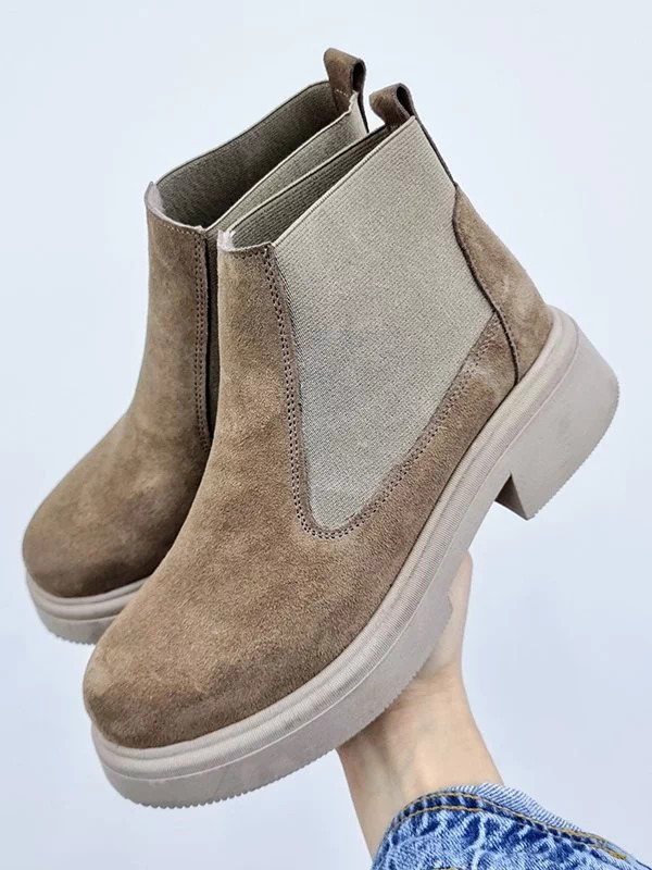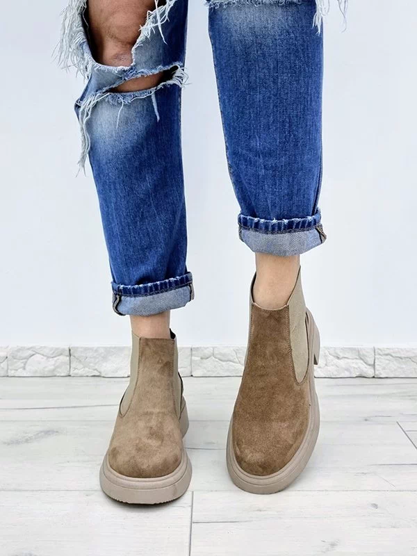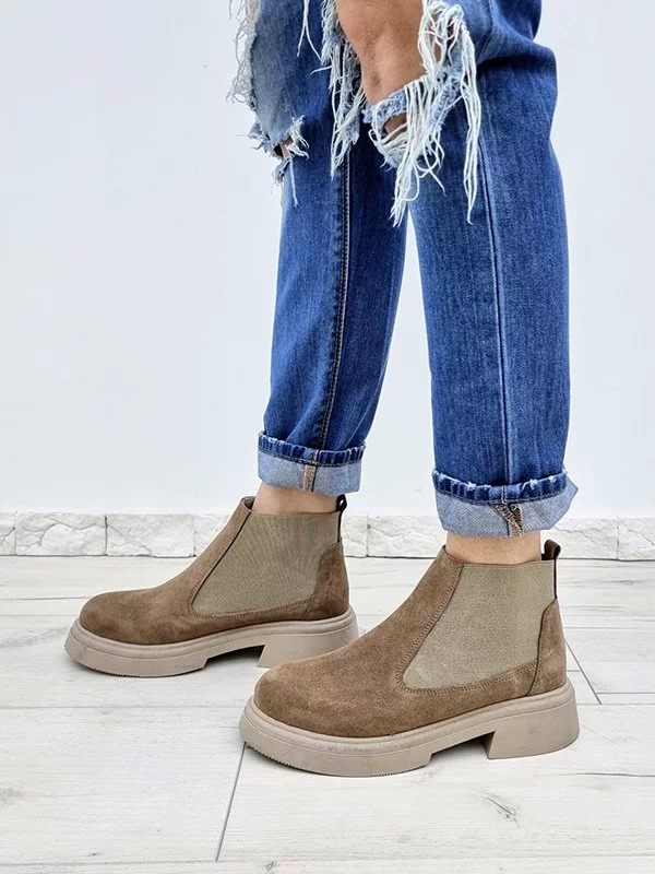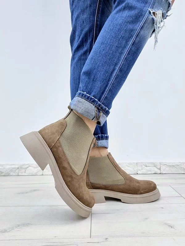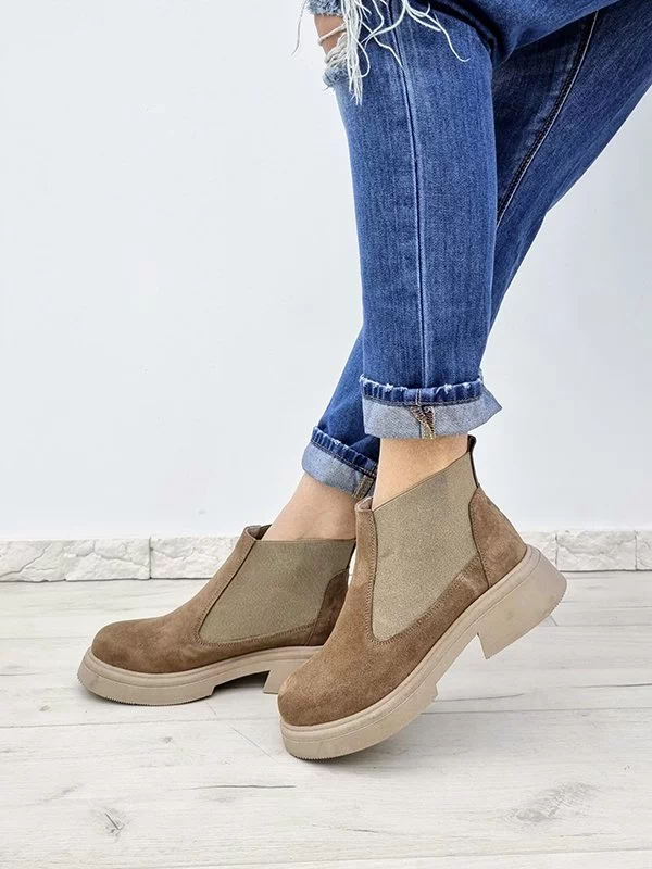 Зимние челси из натуральной замши темно-бежевого цвета