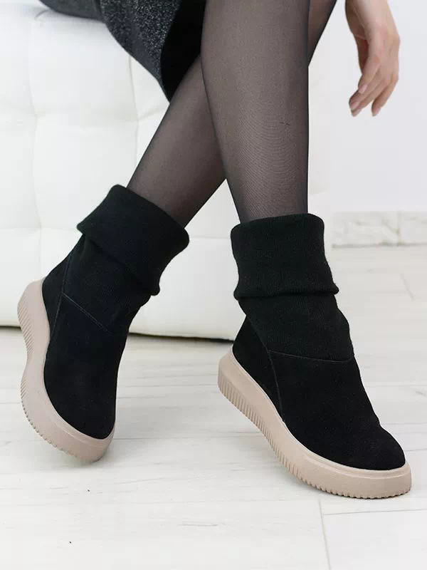 Бежево-черные замшевые зимние хайтопы с шерстяным довязом