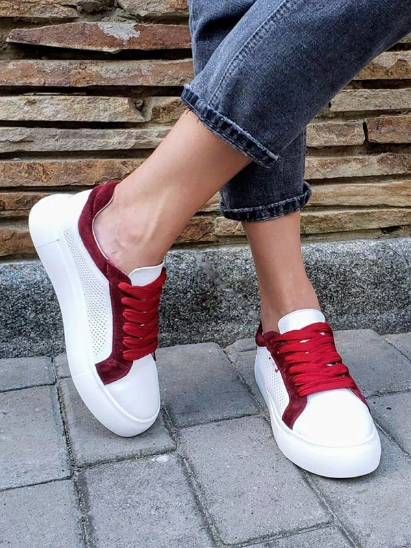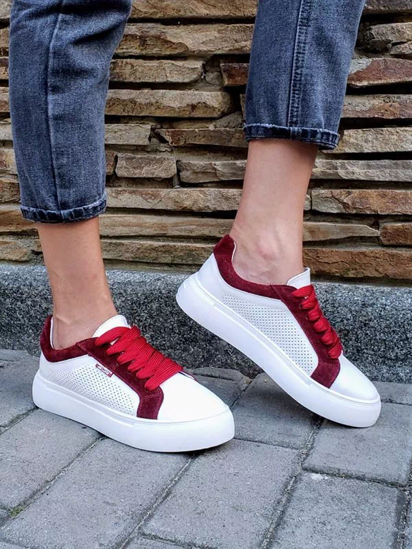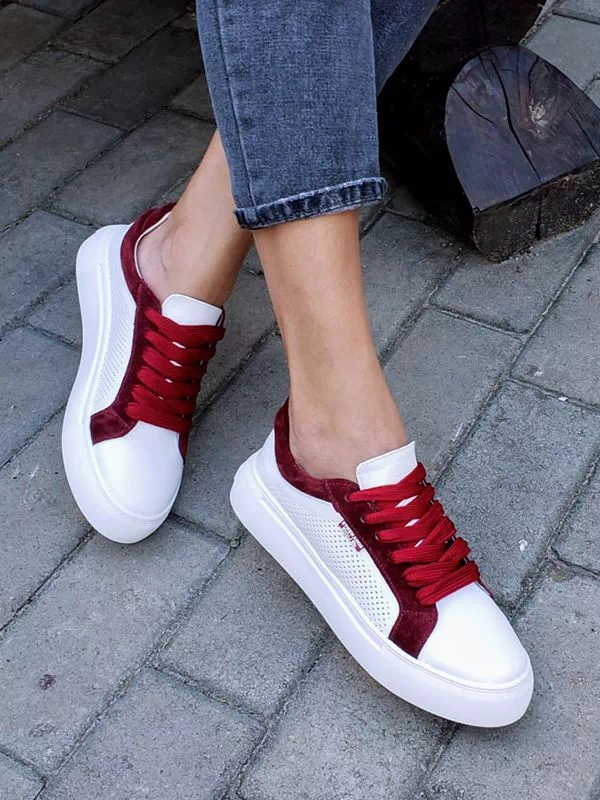 Шикарные женские кеды белого цвета с бордовыми вставками на любые случаи жизни.