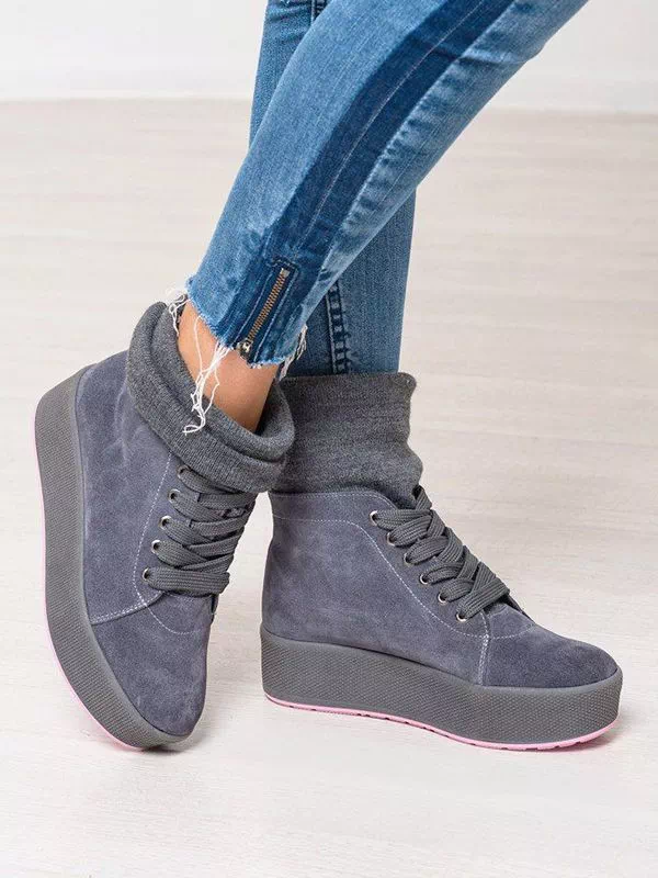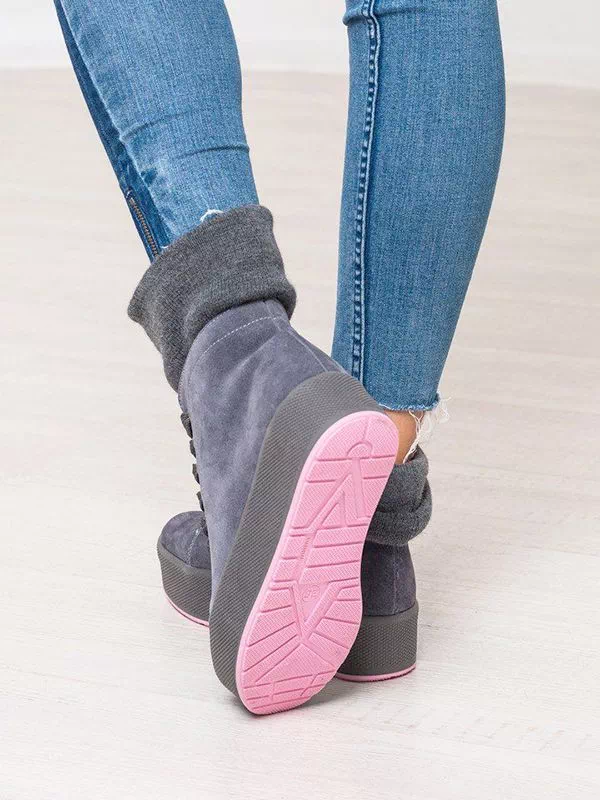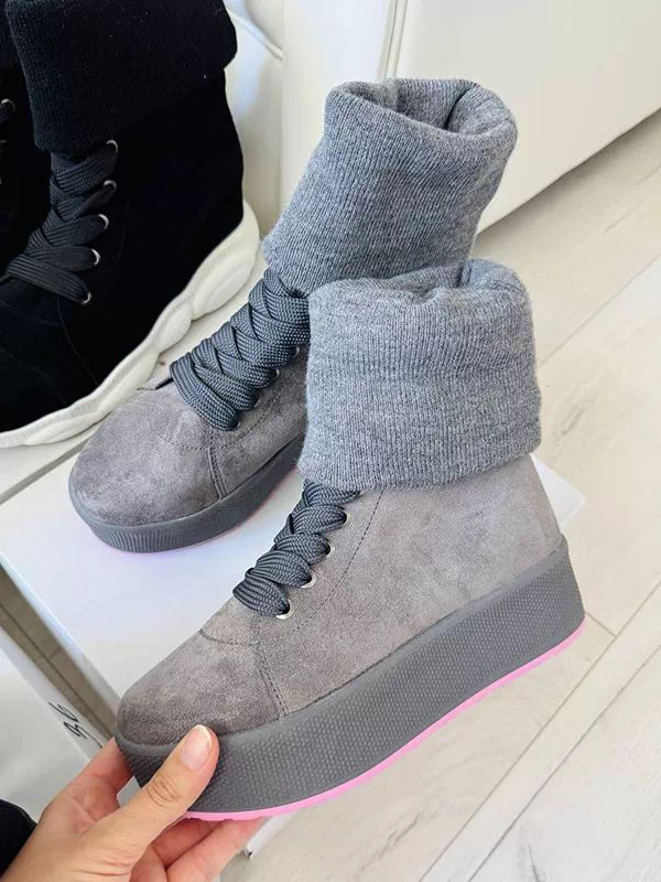 Изящные зимние женские кеды в сером исполнении на все случаи жизни.