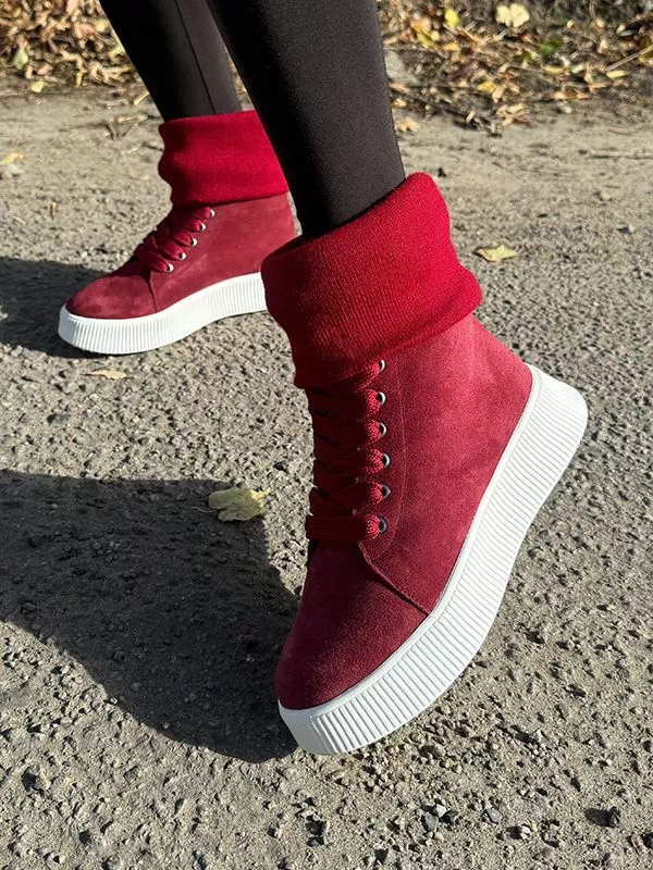 Be the first to review “Замшевые зимние кеды с довязом в бордовом исполнении”