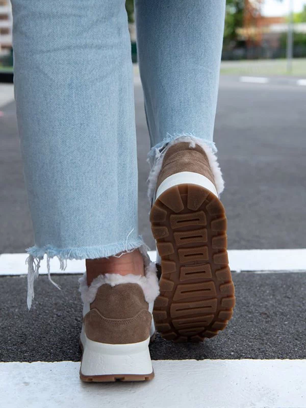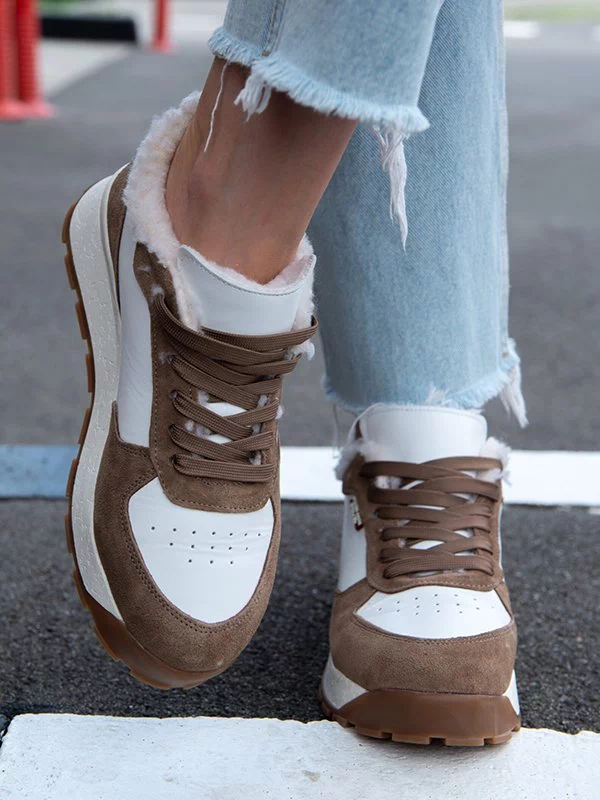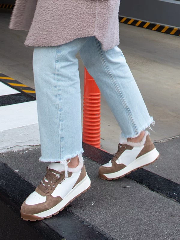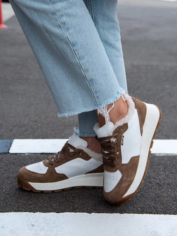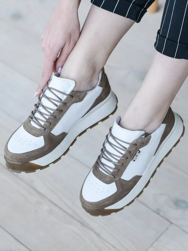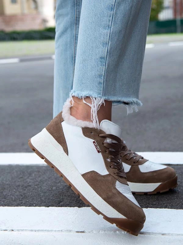 Бело-коричневые зимние кроссовки из натуральной кожи и замши