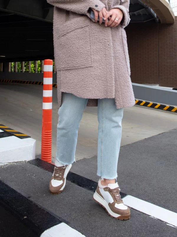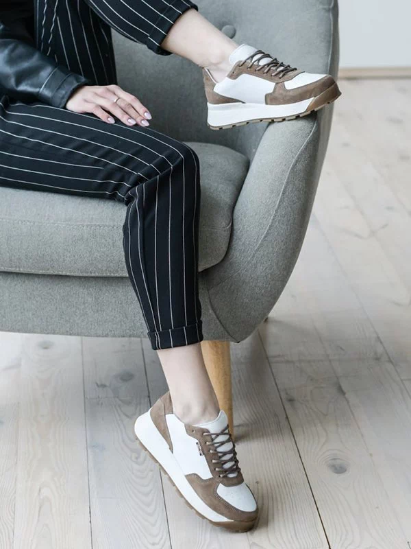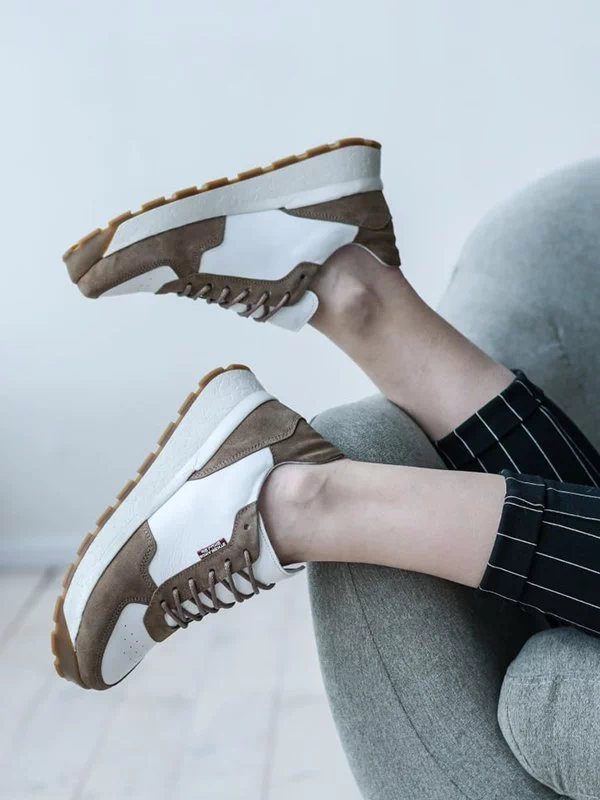 Шикарные женские кроссовки бело-коричневого цвета на все случаи жизни.