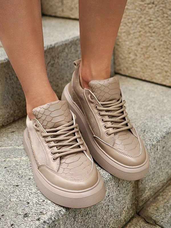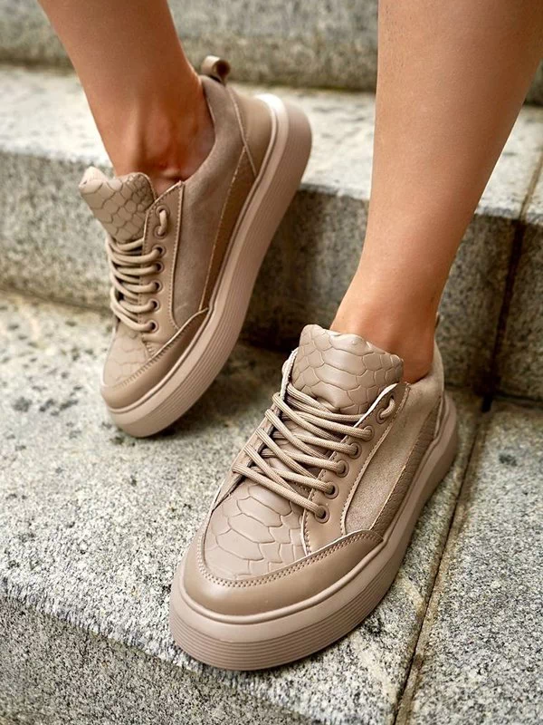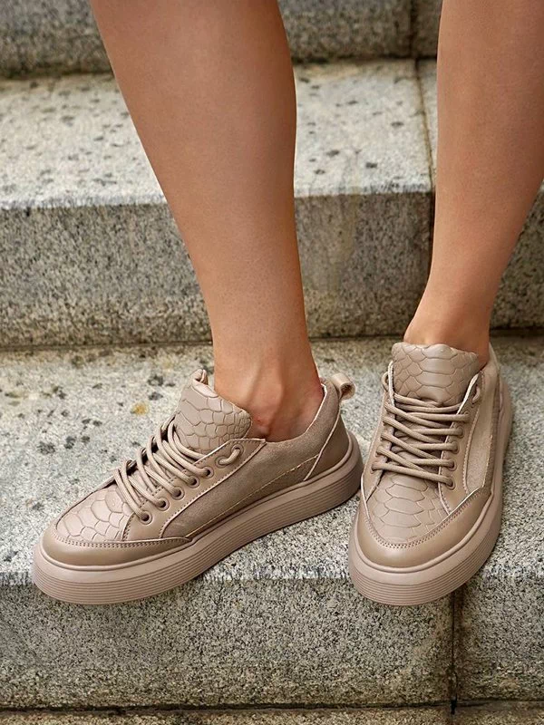 Be the first to review “Бежевые кожаные кроссовки с узором «под рептилию»”