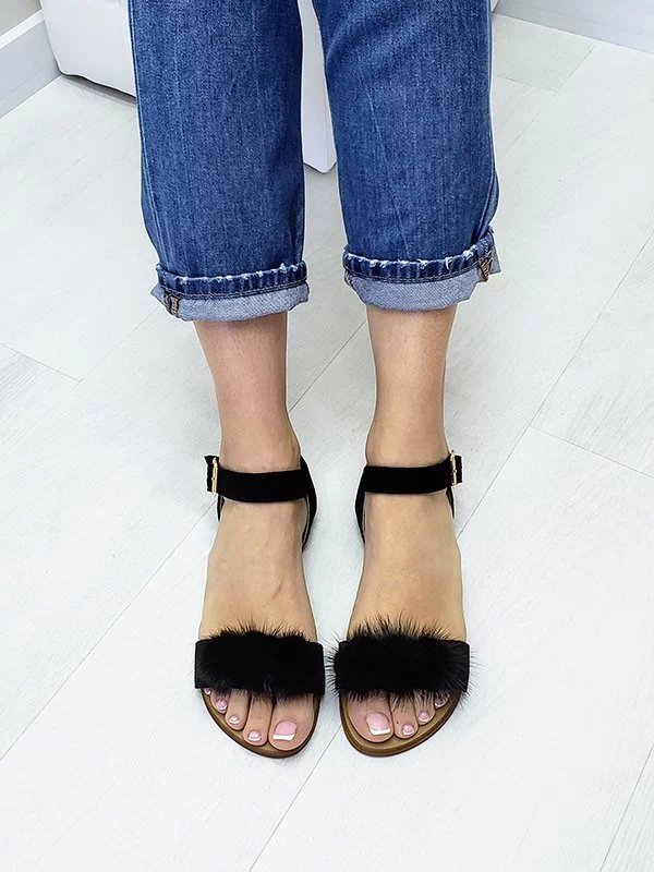 Be the first to review “Черные замшевые сандалии с норковыми помпонами”