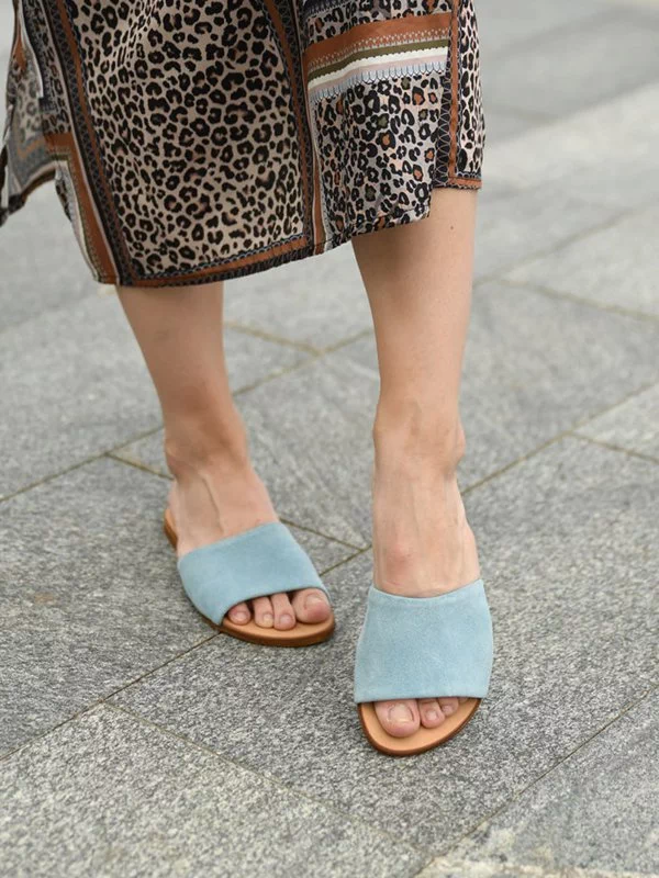 Мощные низкие женские шлепанцы в голубом исполнении на все случаи жизни.