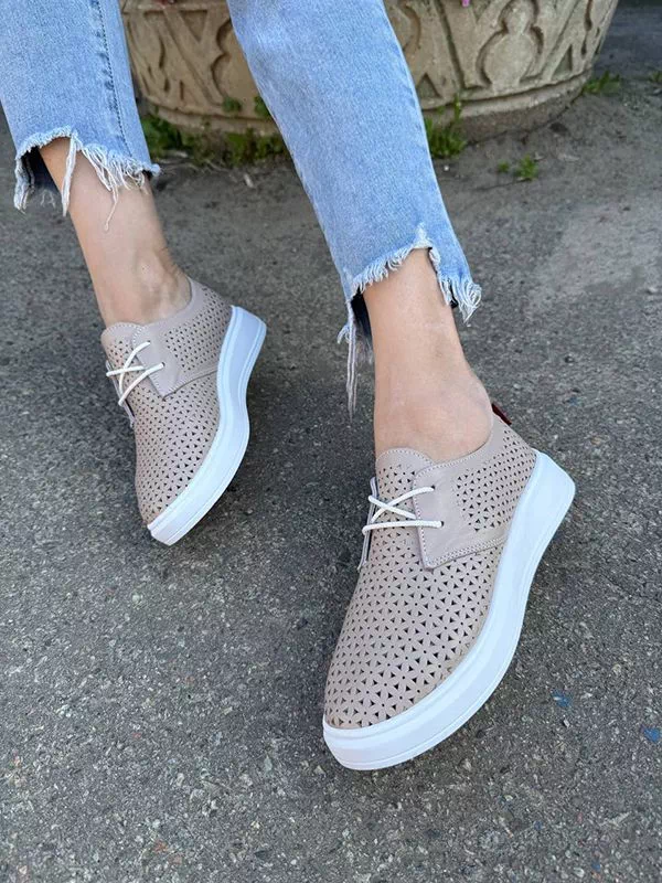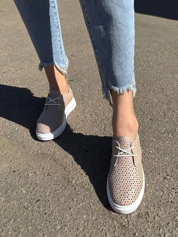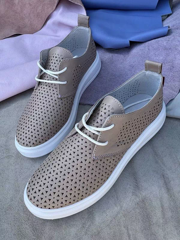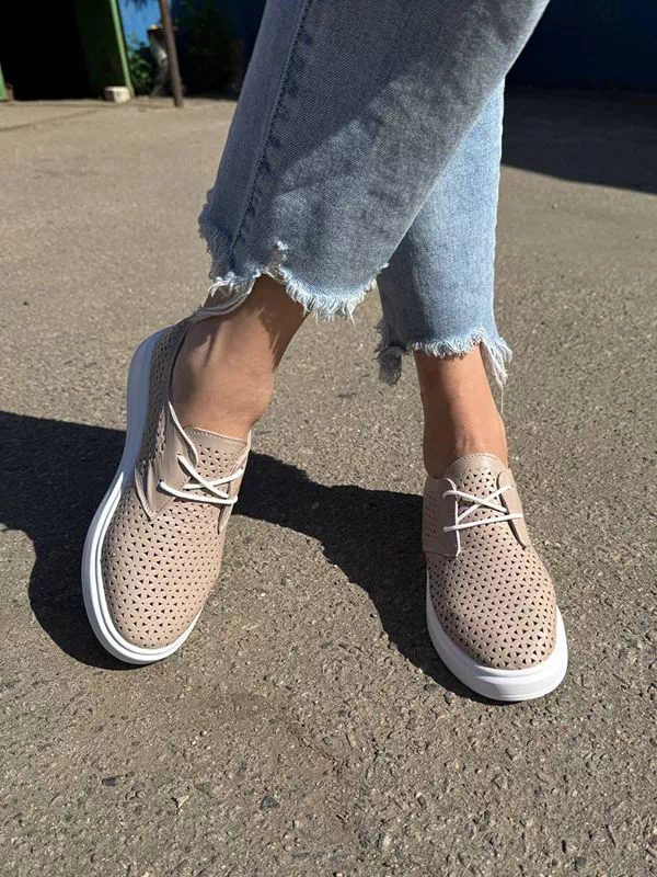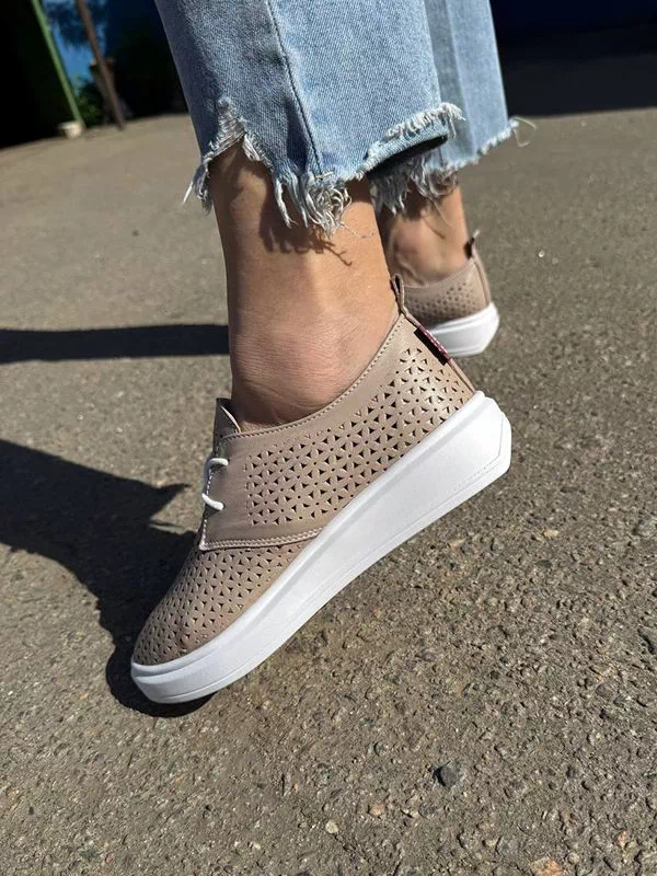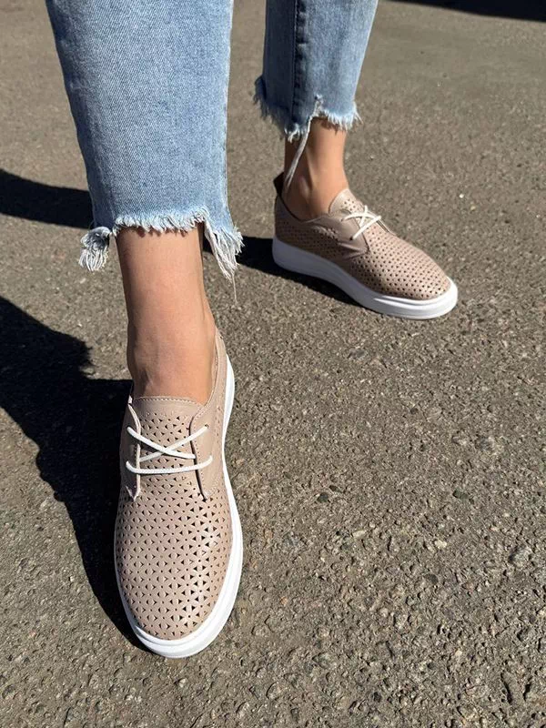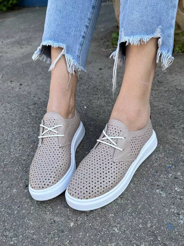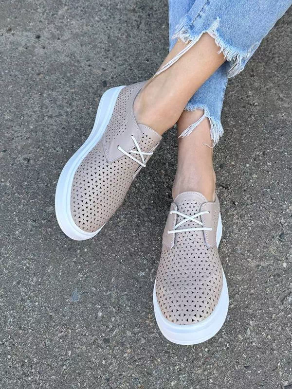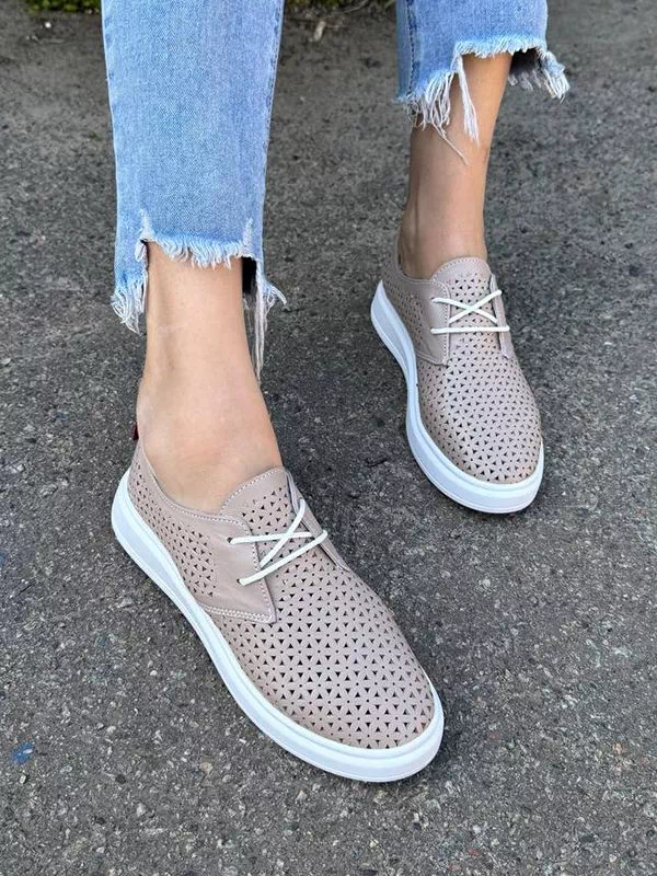 Кожаные летние туфли оттенка «капучино» с перфорацией