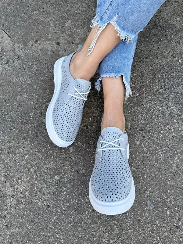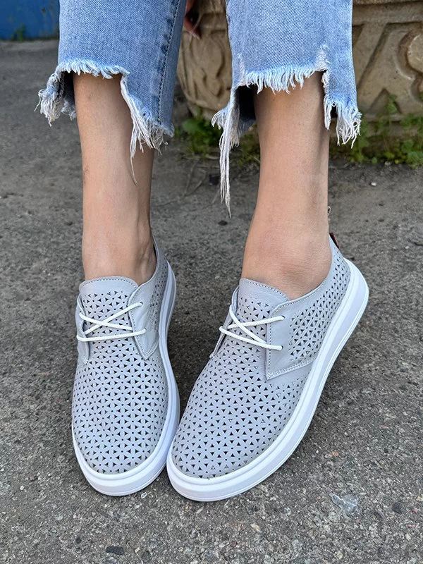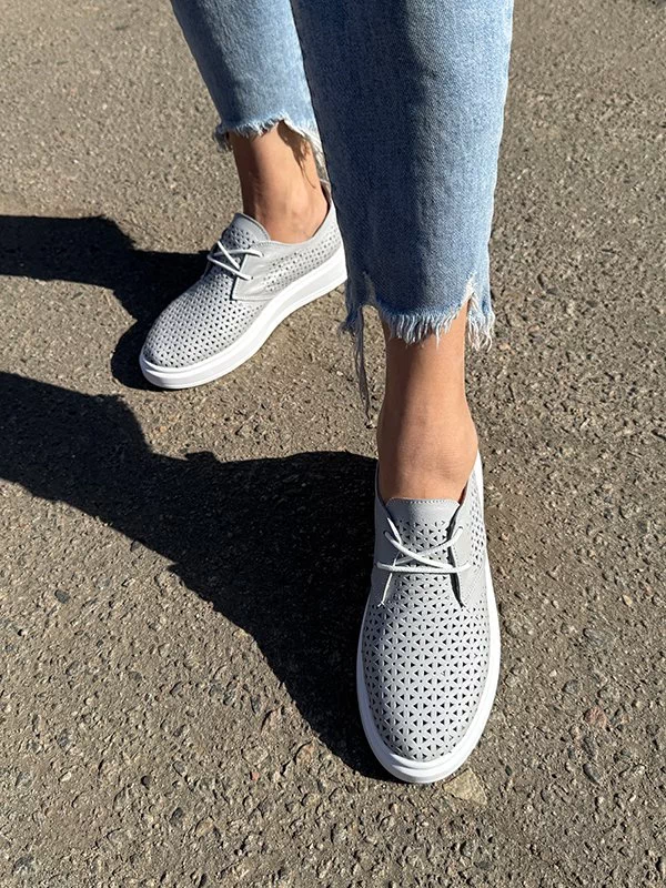 Be the first to review “Летние кожаные туфли серого цвета с перфорацией”