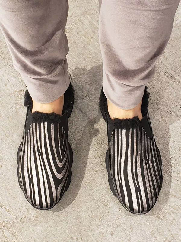 Be the first to review “Нубуковые серо-черные зимние слипоны с принтом «под зебру»”
