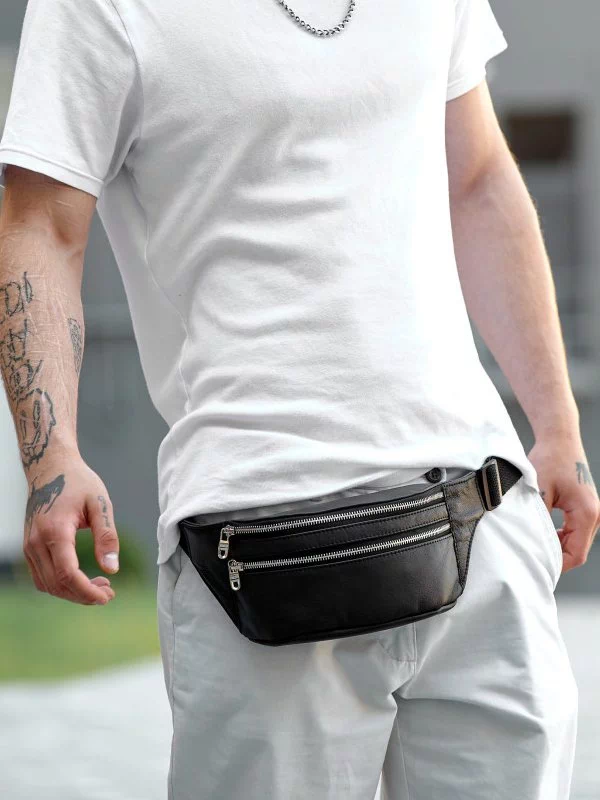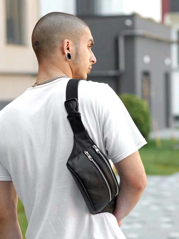 Стильная сумка на пояс (бананка) кожаная чёрная