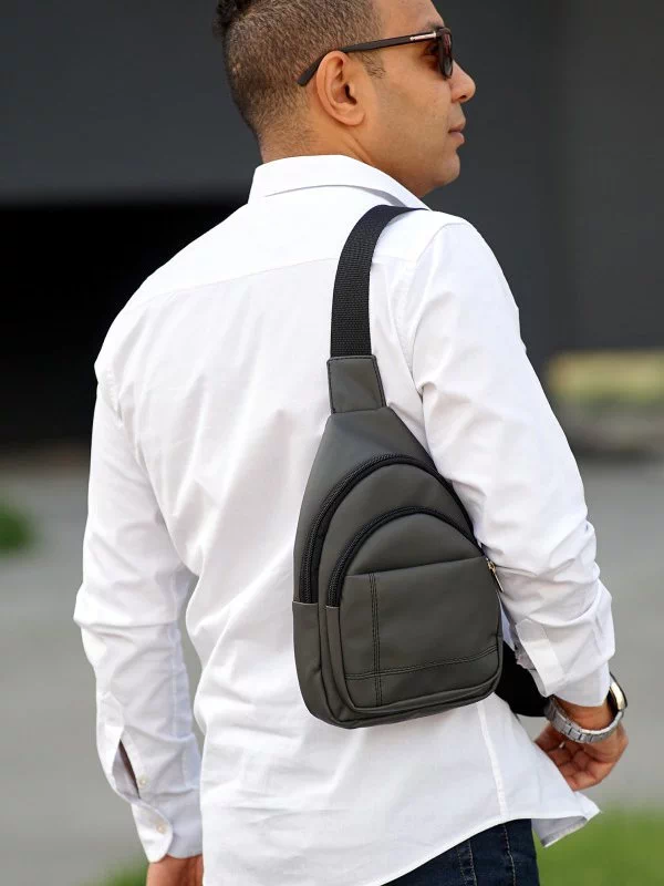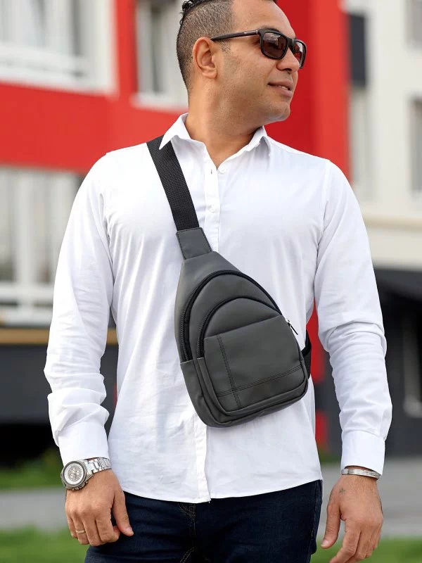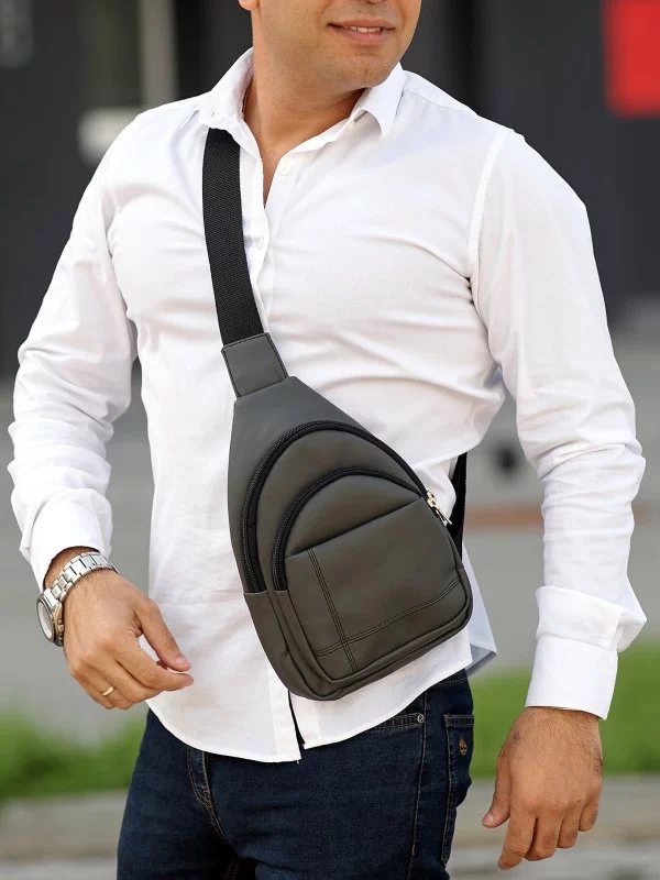 Восхитительная мужская сумка на плечо, в графитовом оттенке на любые случаи жизни.