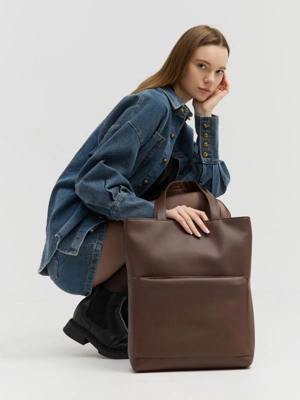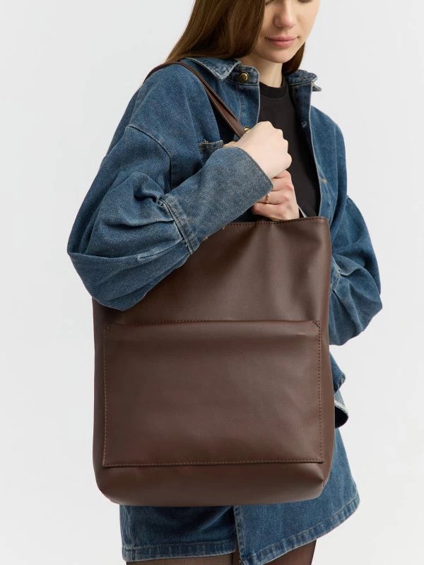Be the first to review “Сумка-шоппер шоколадного оттенка из эко-кожи”