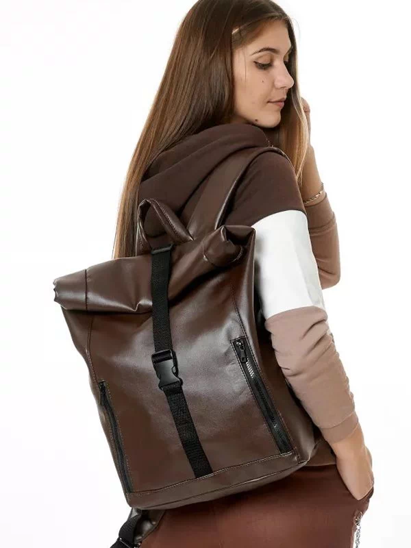 Бордовий місткий рюкзак-ролл з еко-шкіри