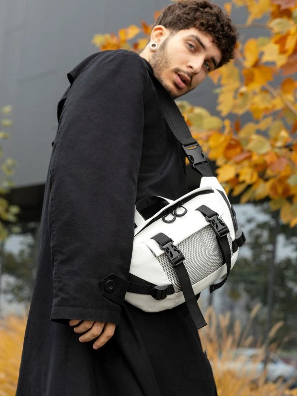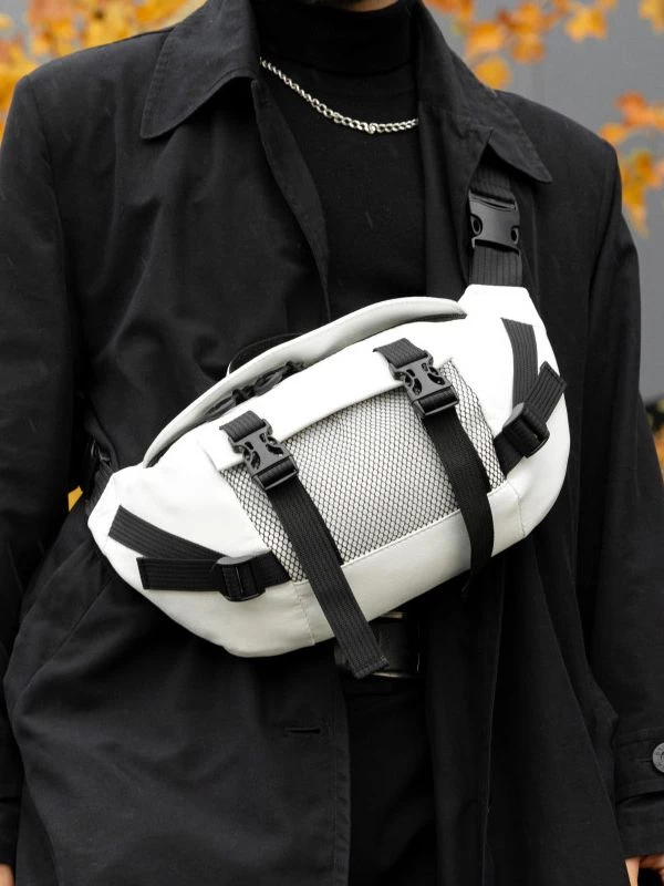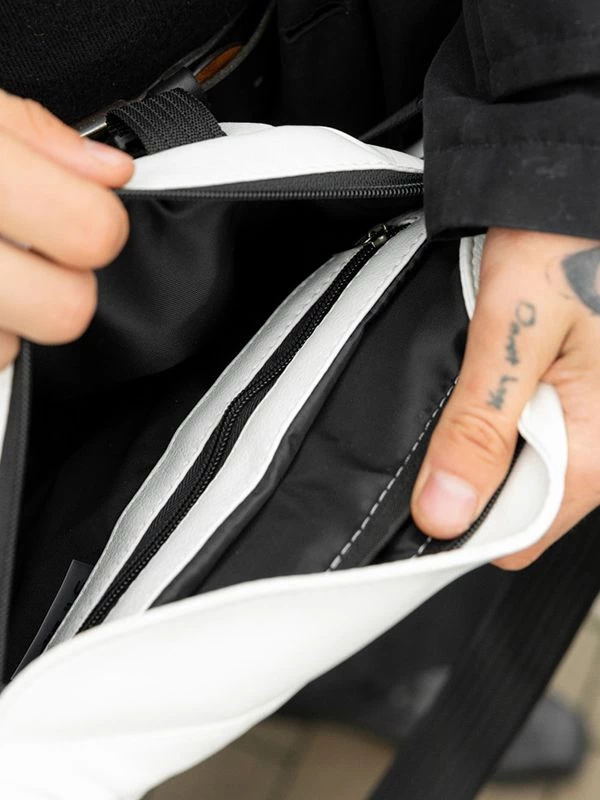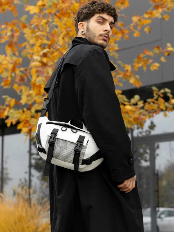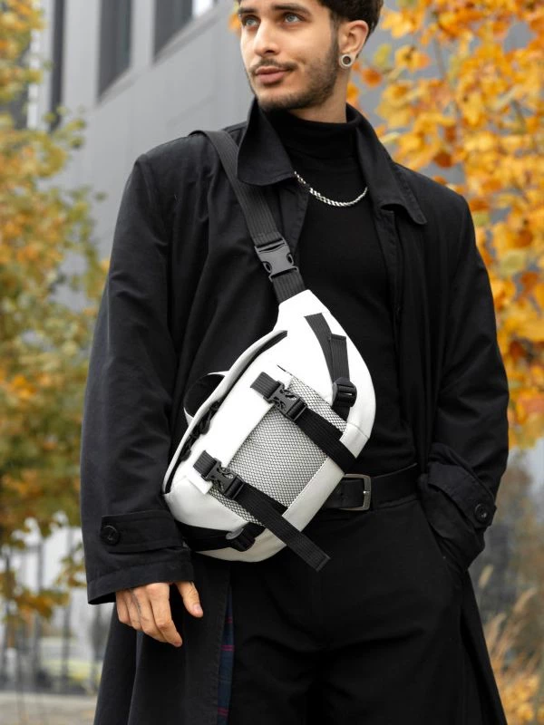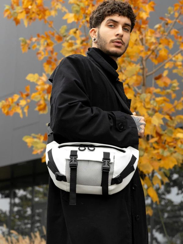 Захоплююча велика чоловіча сумка-бананка білого кольору на будь-які випадки життя.
