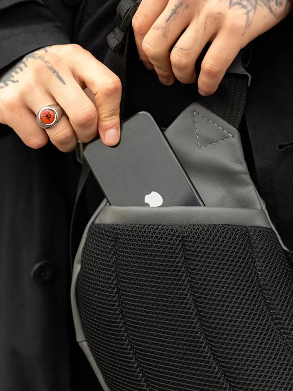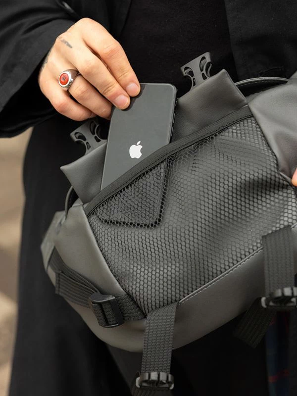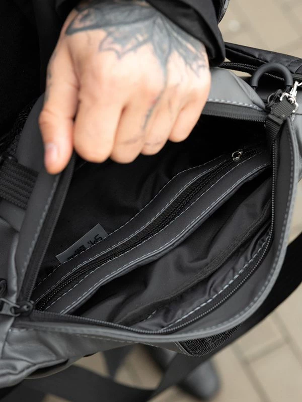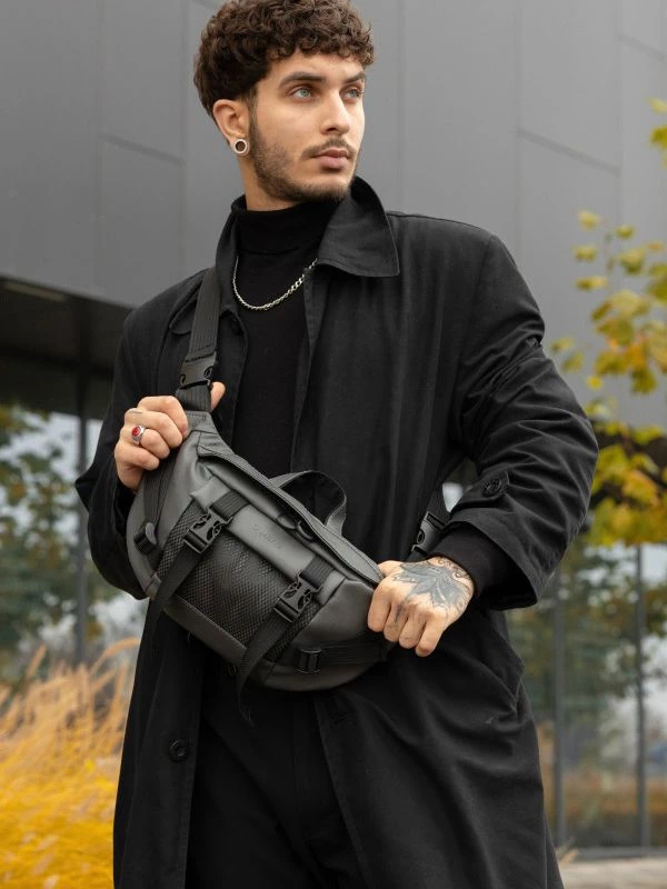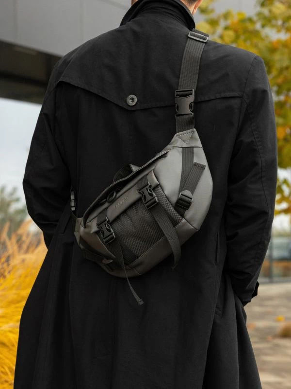 Приголомшуюча велика чоловіча сумка-бананка у темно-сірому виконанні на всі випадки життя.