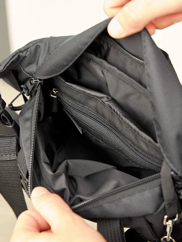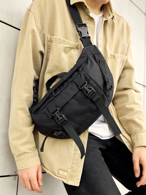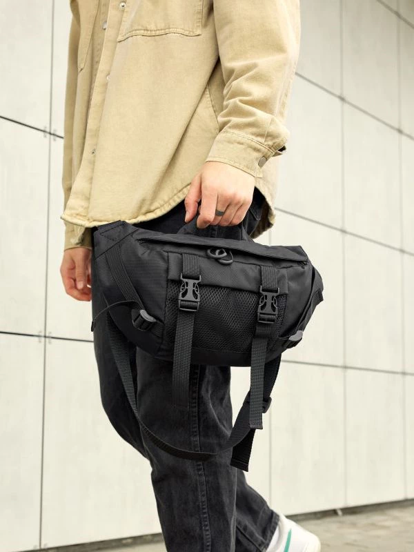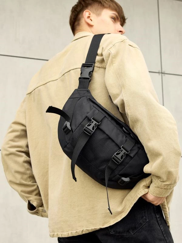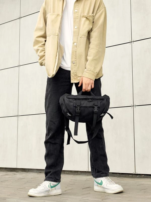 Цікава велика чоловіча сумка-бананка чорного кольору на будь-які випадки життя.