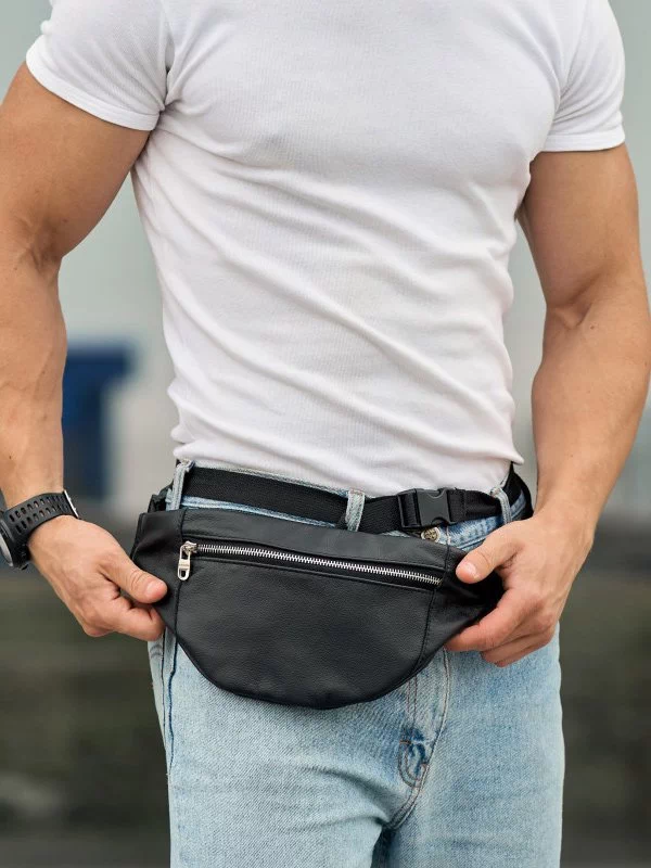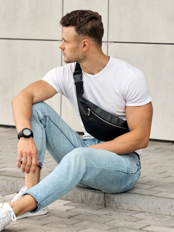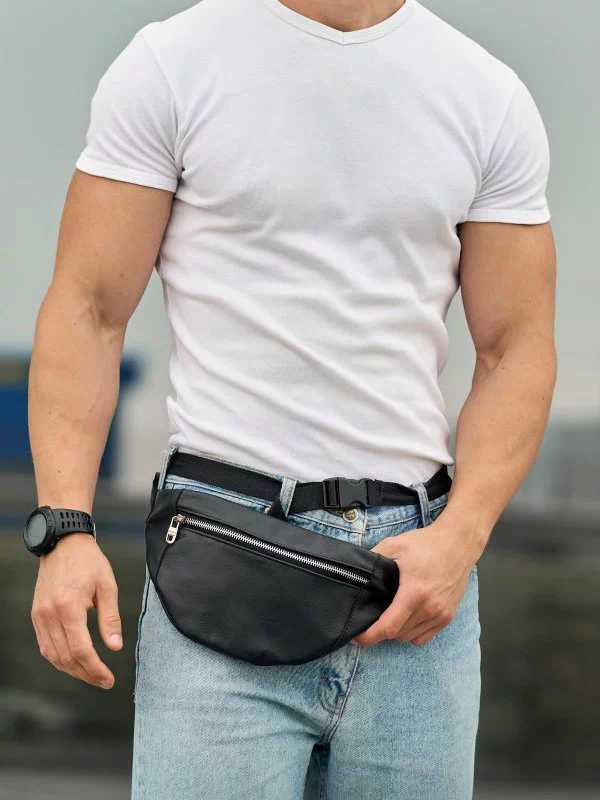 Вишукана чоловіча сумка-бананка чорного кольору на будь-які випадки життя.