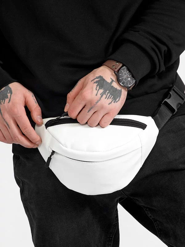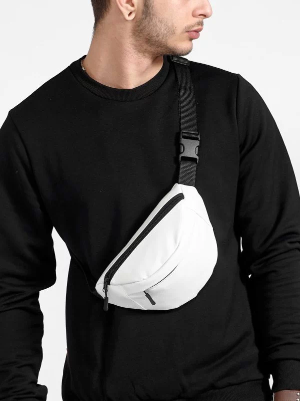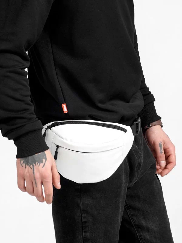 Вражаюча чоловіча сумка-бананка у білому виконанні на будь-які випадки життя.