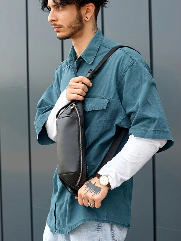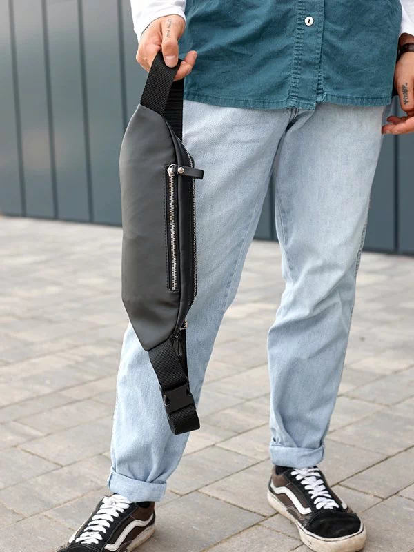 Елегантна сумка-бананка з графітової еко-шкіри