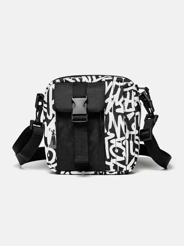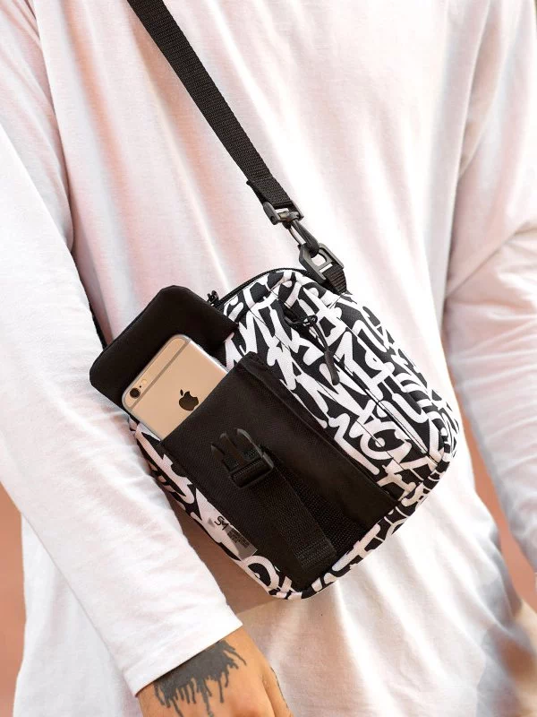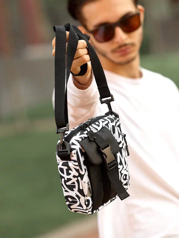Привлекательная черно-белая мужская сумка через плечо универсального типа на любые случаи жизни.