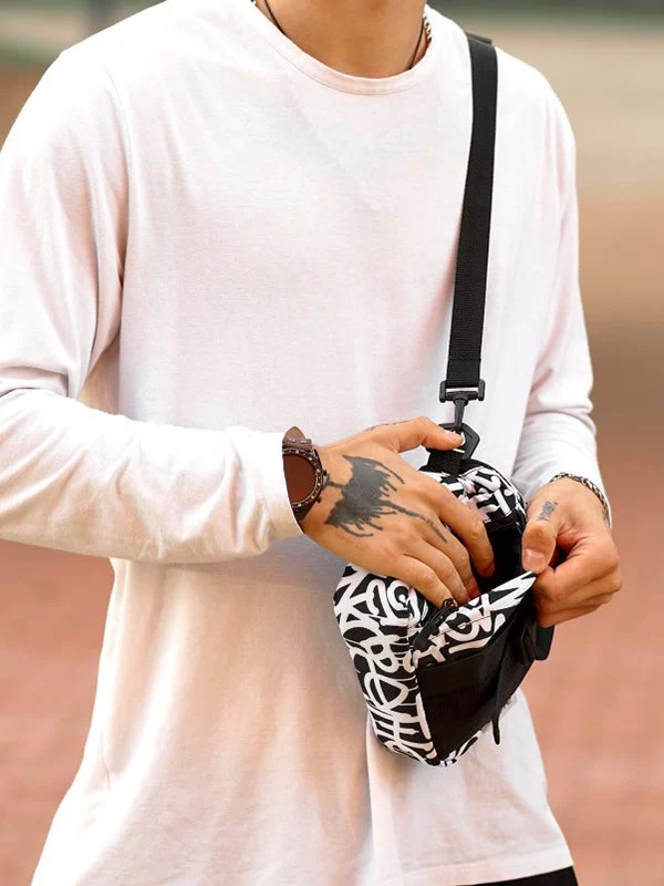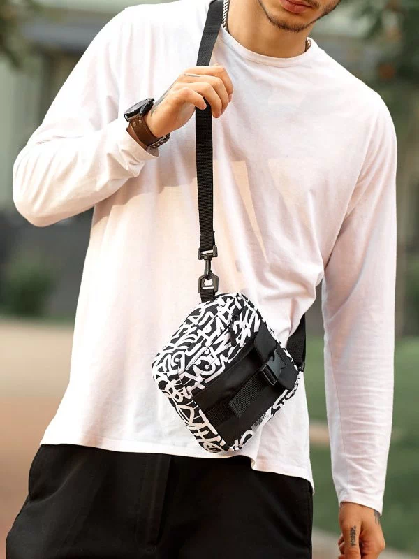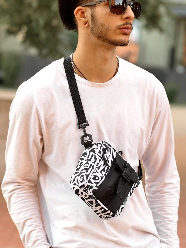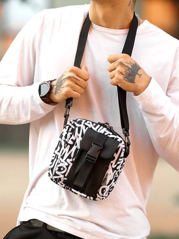 Приваблива чорно-біла чоловіча сумка через плече в універсальному стилі на всі випадки життя.