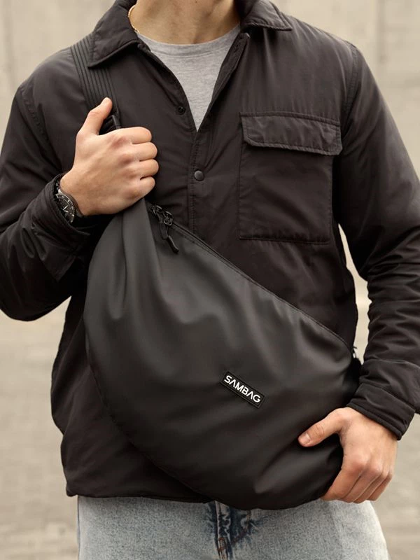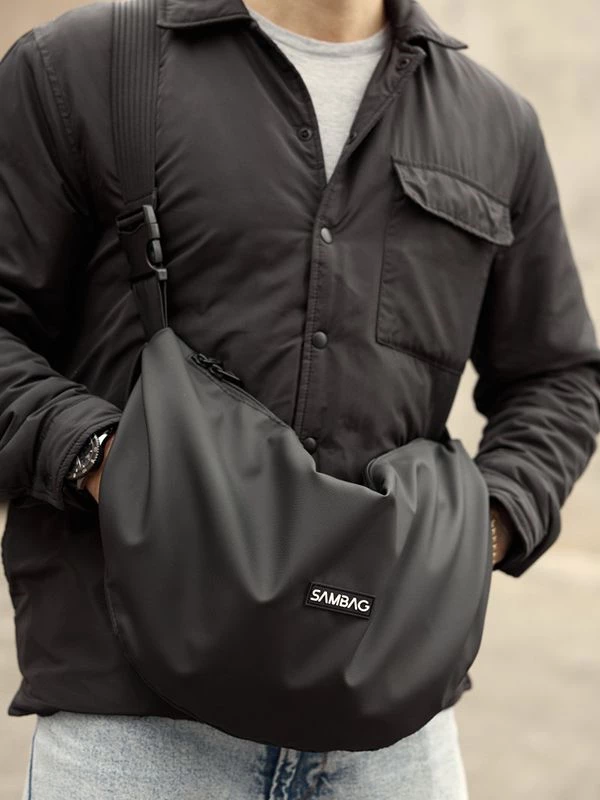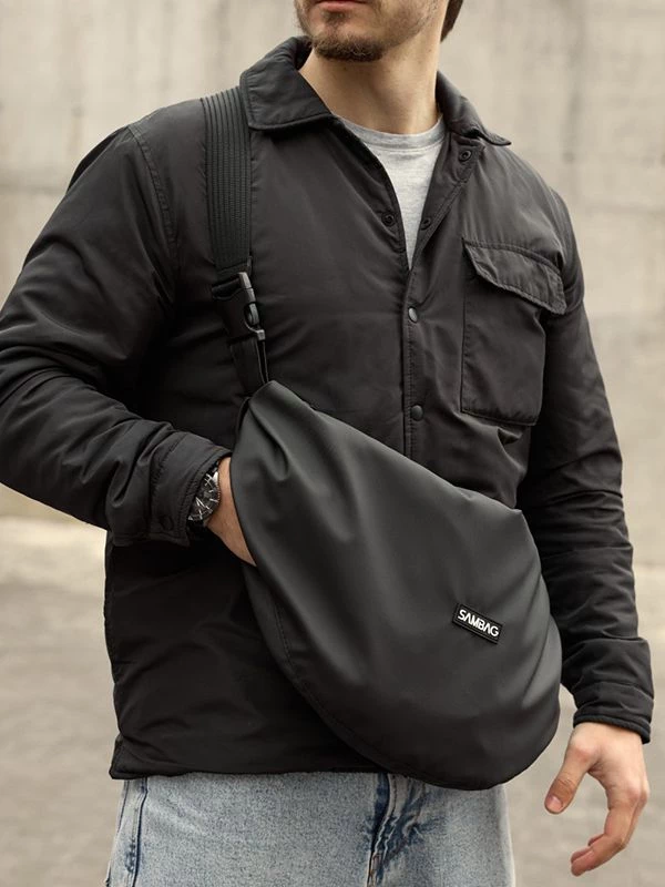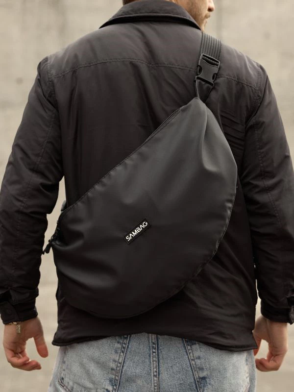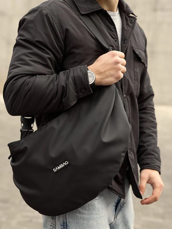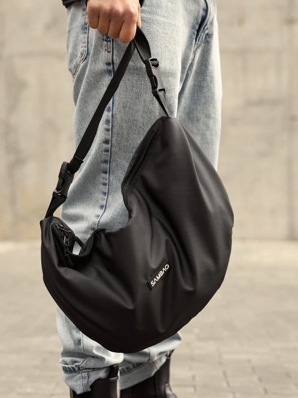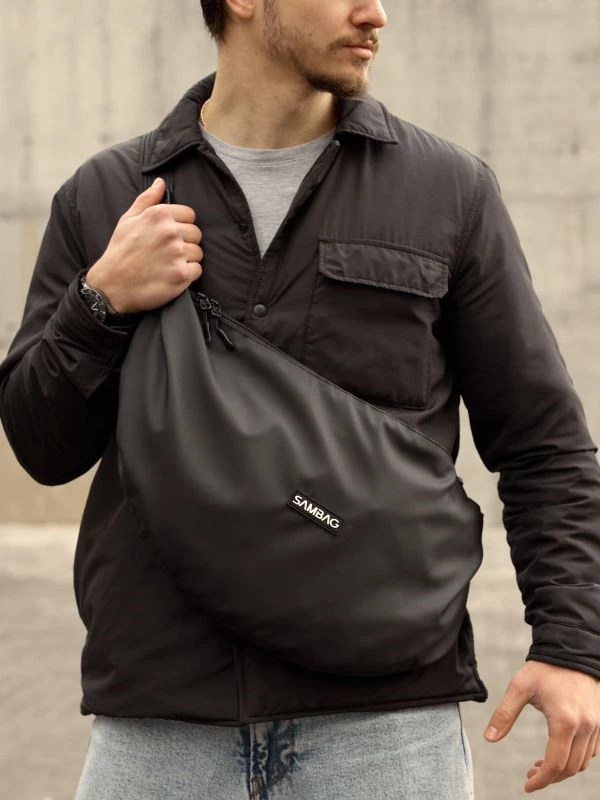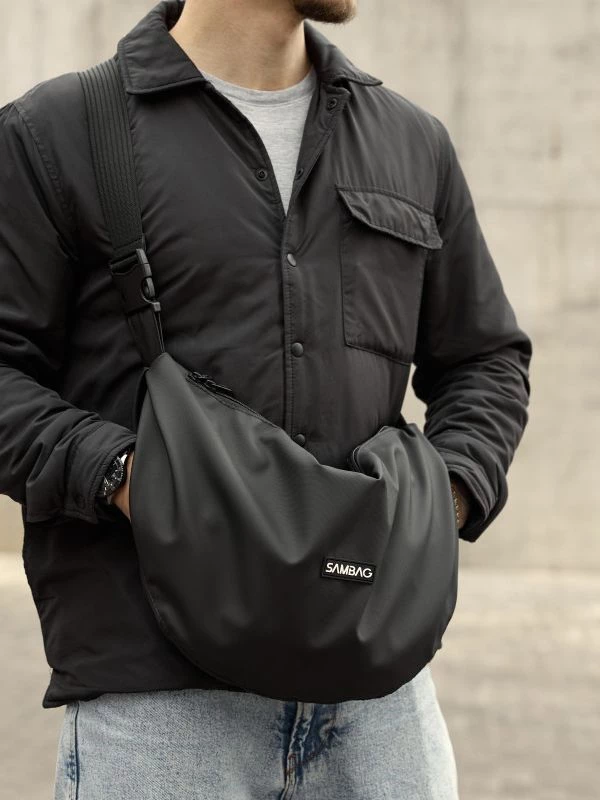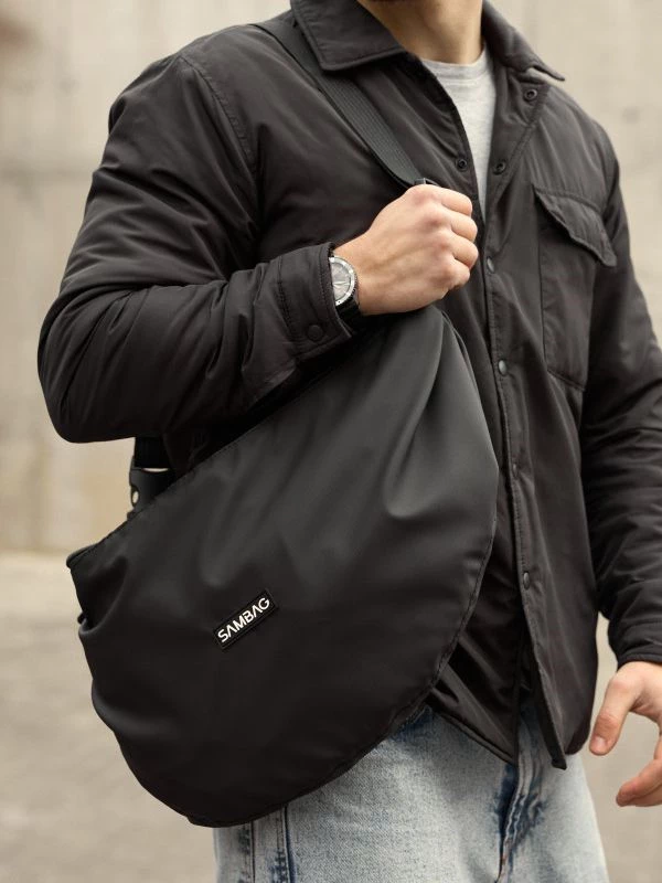 Сучасна міська сумка чорного кольору з щільного текстилю