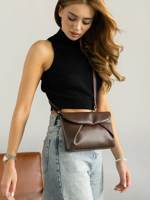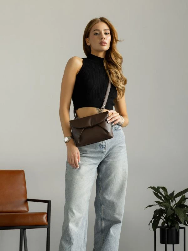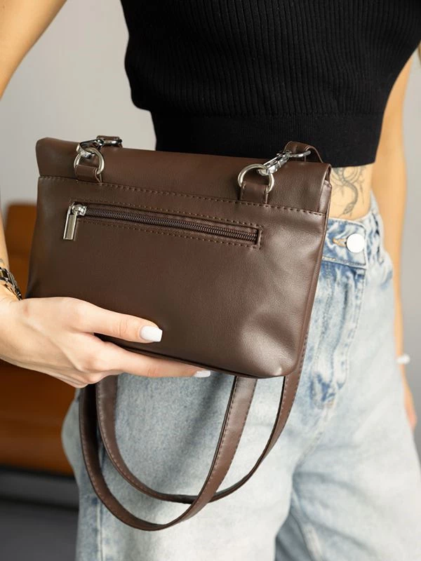 Цікава прямокутна жіноча сумка-кросбоді шоколадного відтінку на будь-які випадки життя.