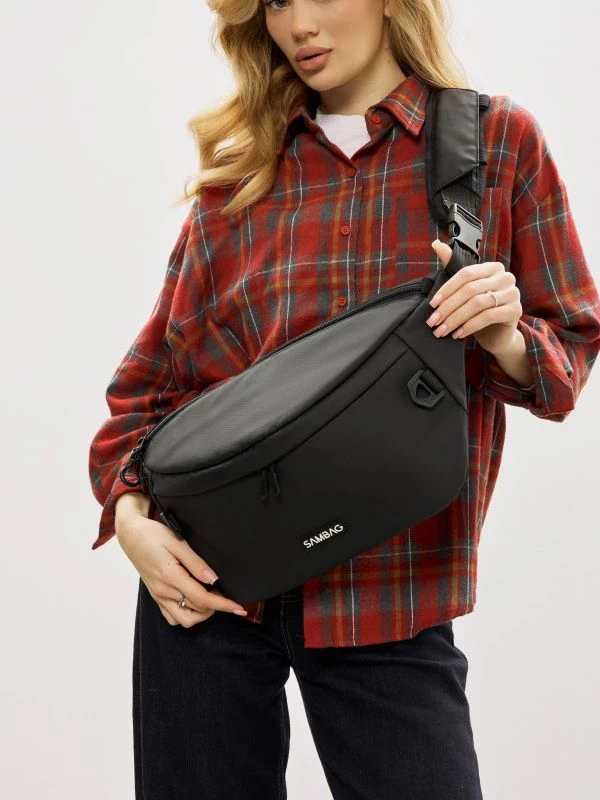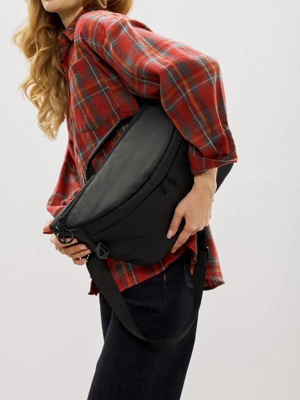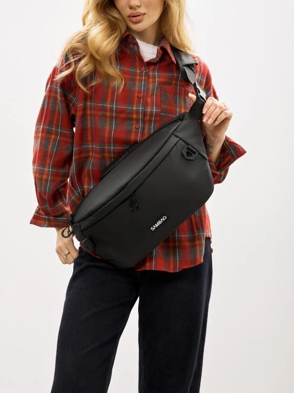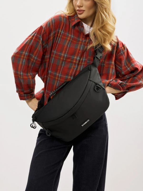 Приголомшуюча жіноча сумка-бананка чорного кольору на будь-які випадки життя.